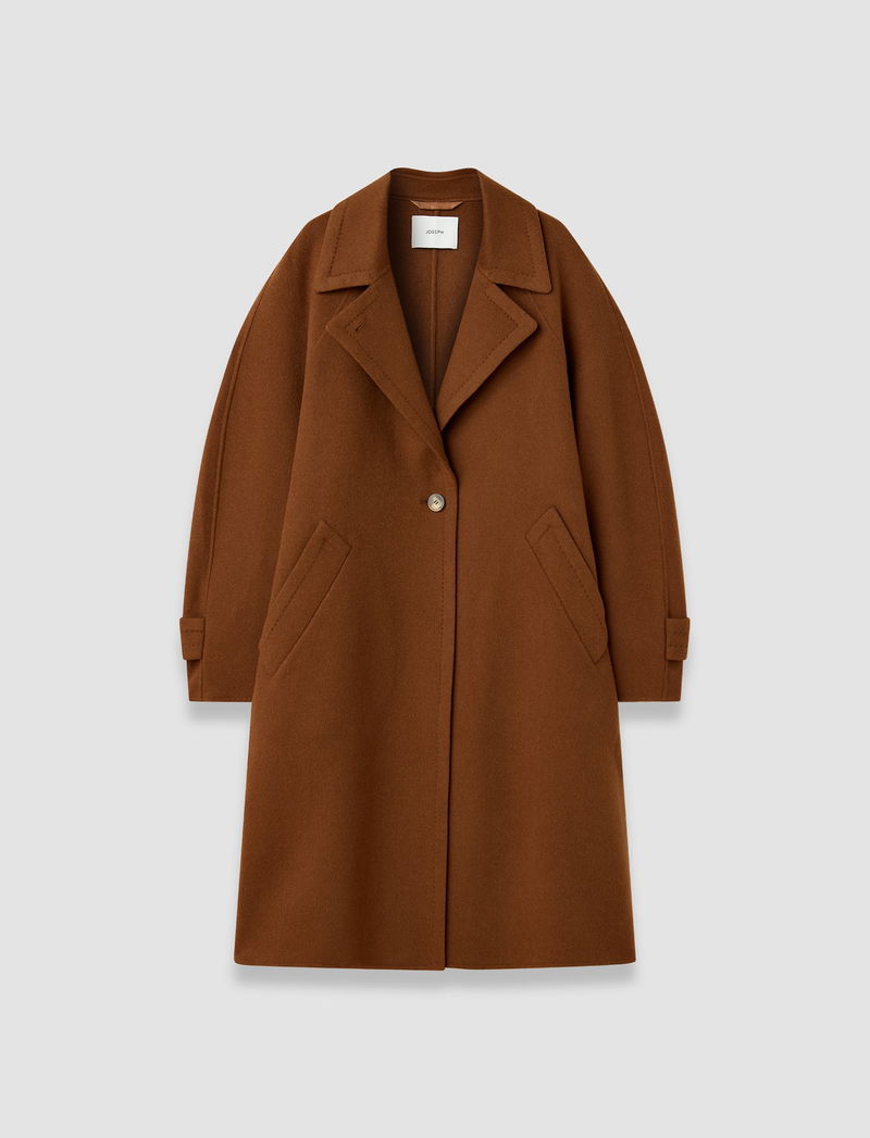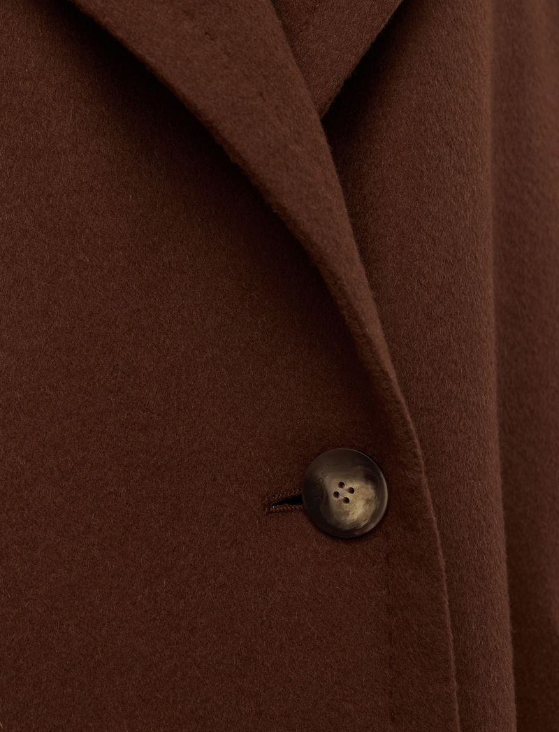 The Franco Double Face Cashmere Coat is a relaxed fit, single-breasted style, crafted from a luxurious blend of wool and cashmere. A wide collar with pick-stitch detailing frames the neckline, while statement slanted pockets and cuff tabs bring definition to the cocoon silhouette.