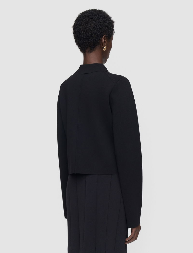 The Gare Compact Milano Knit Jacket is a relaxed fit, short jacket. Crafted from a viscose blend, a compact, stretchy knit which delivers comfort and the clean lines of classic tailoring. It's zipped style featuring a gold-tone bean top button.