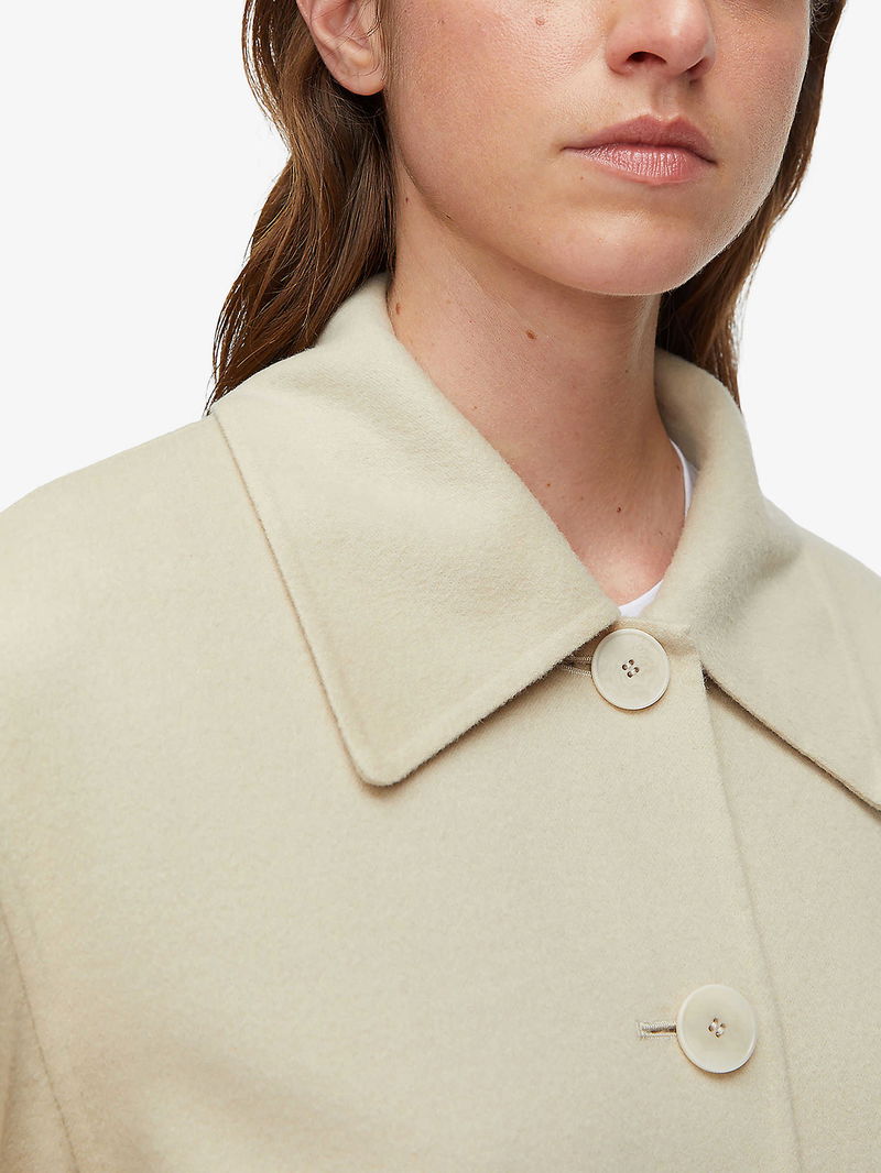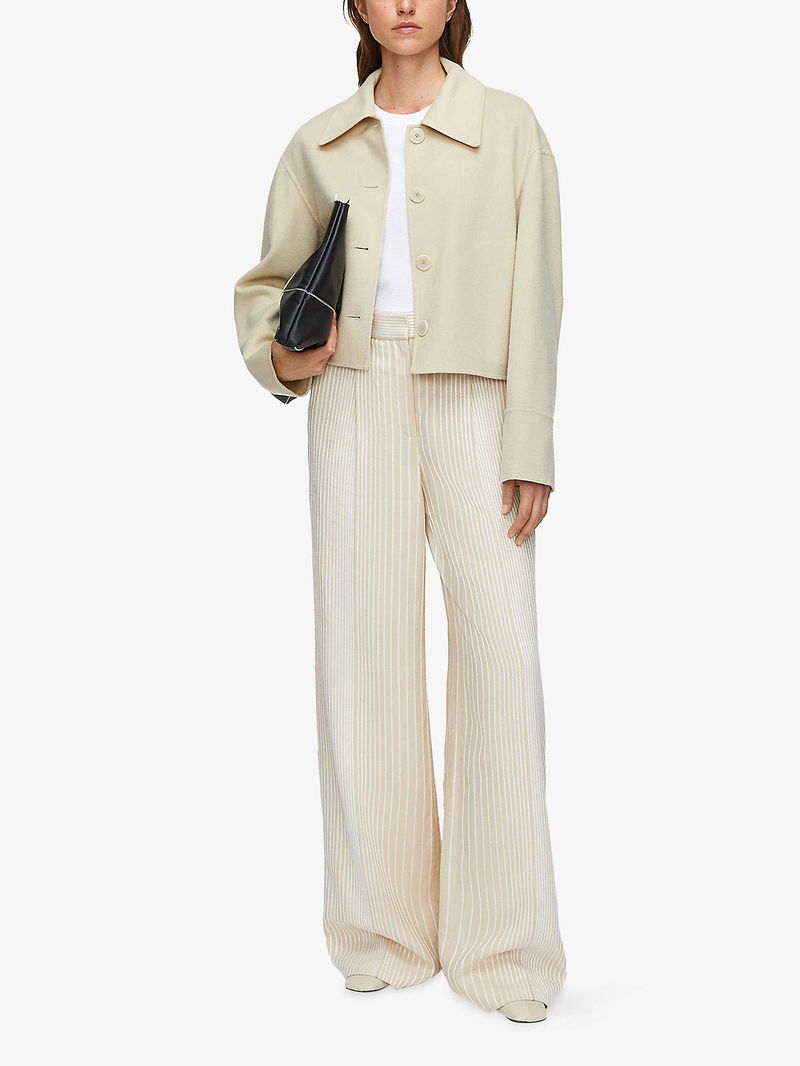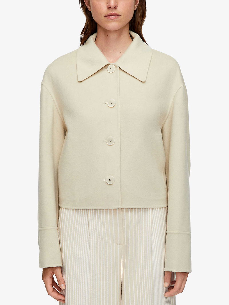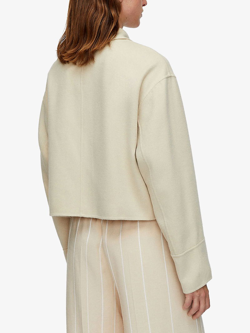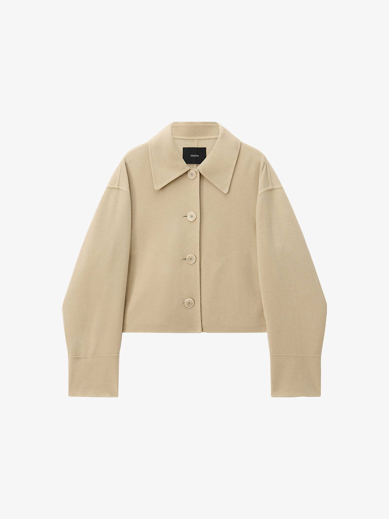 JOSEPH wool and silk-blend jacket. Regular fit, collar, long sleeves, dropped shoulders, single-breasted front, double faced, two slip pockets at sides.