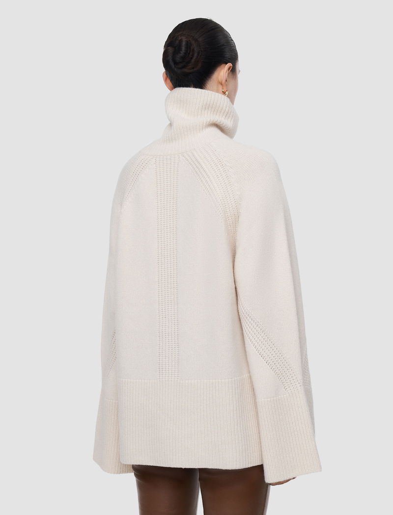 This knit features fisherman's rib detailing and slits at the cuffs and hem for an effortless, ultra-cosy look.