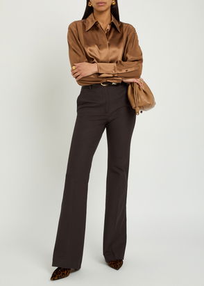 A reimagination of the classic debardeur, the Meg Silk Satin Blouse is finished in a sleek silk satin and gives a refined twist to layering. Featuring a deep V-neck and figure flattering shape, this essential blouse can be paired with the Frances Skirt or Jack Trousers for a modern take on suiting.