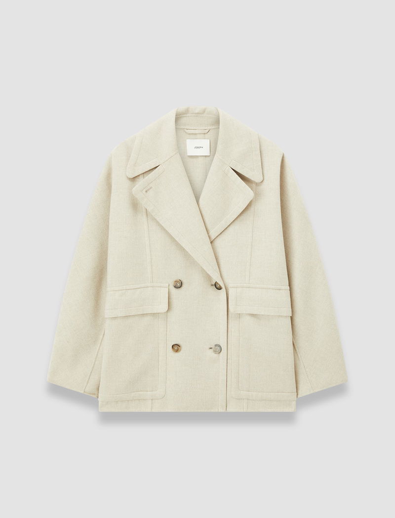 The Menas Light Double Wool Jacket is a relaxed fit style crafted from a luxurious wool–silk blend, offering exceptional softness and fluid structure. Tailored seam detailing provides subtle shaping and structure. Ideal for transitional seasons and understated styling, patch pockets and a wide collar bring together cosiness and practicality.