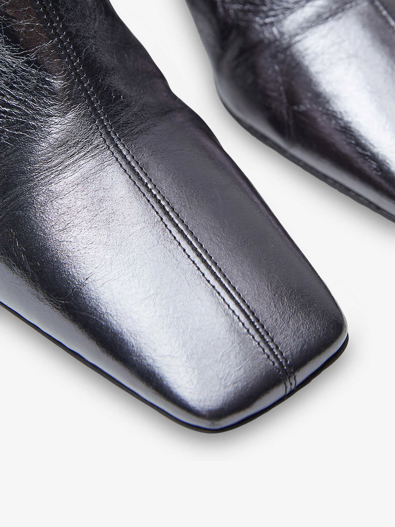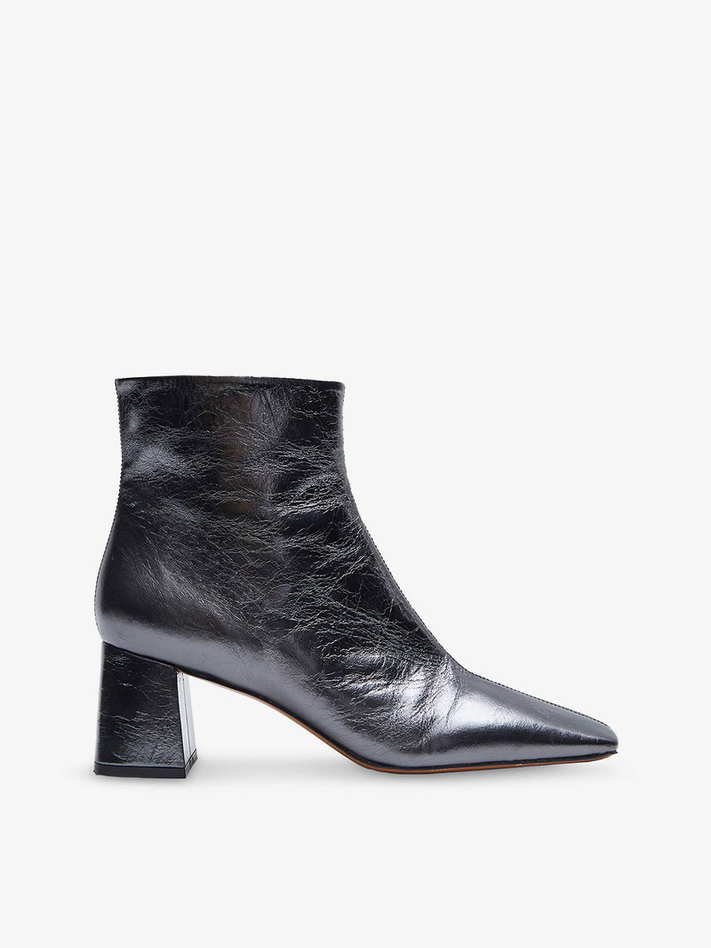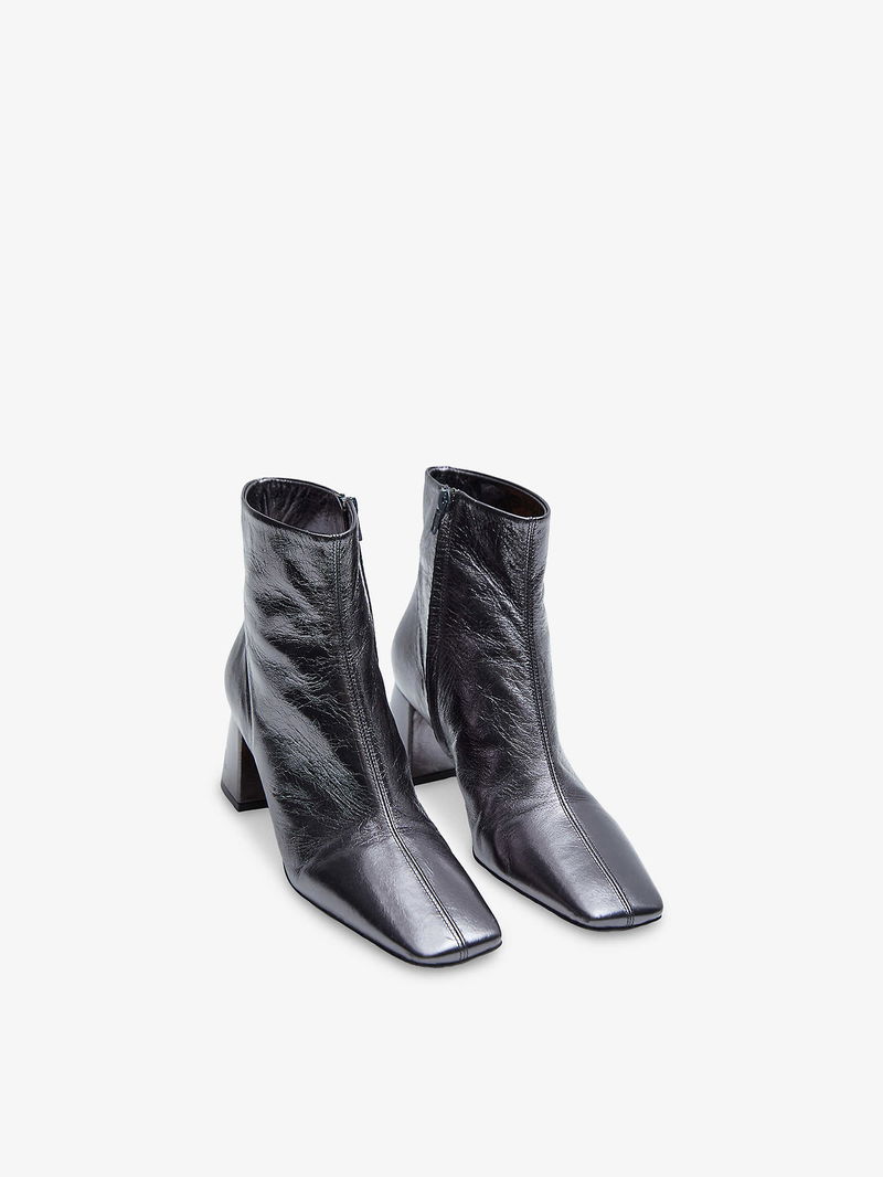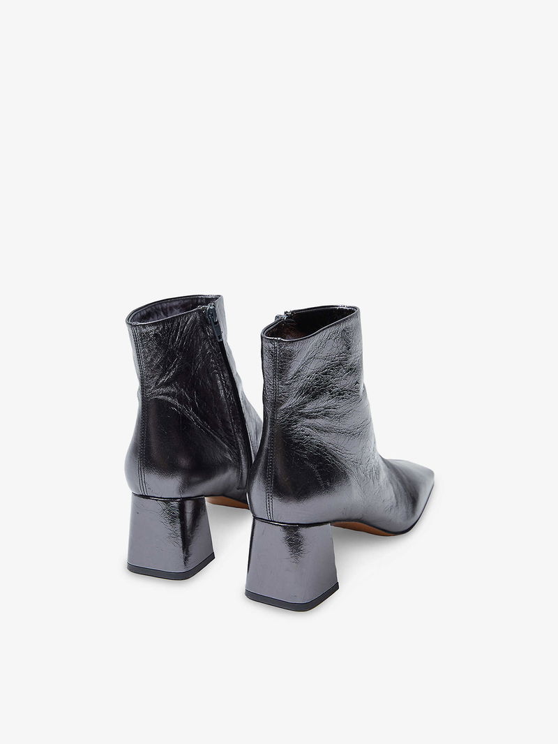 Metallic Leather Heeled Ankle Boots