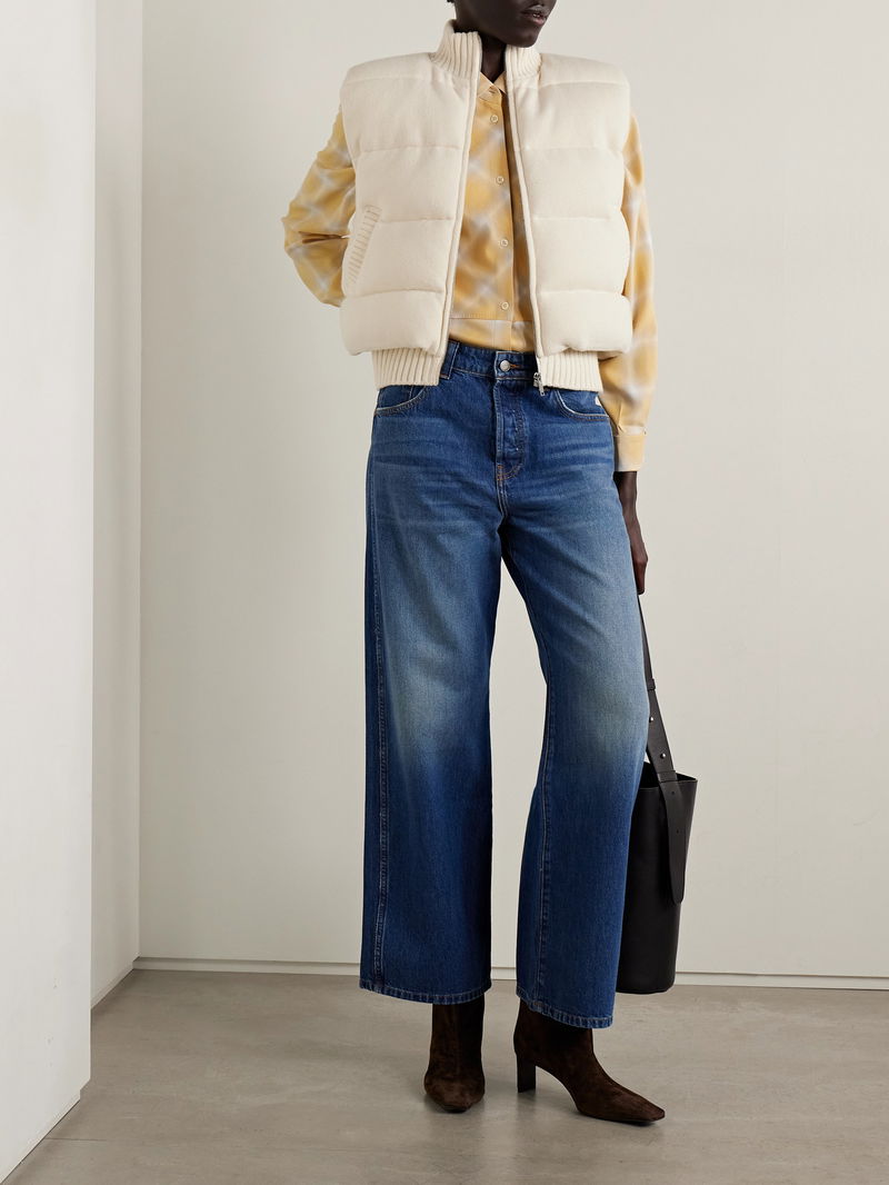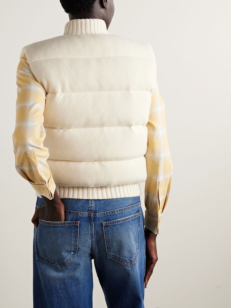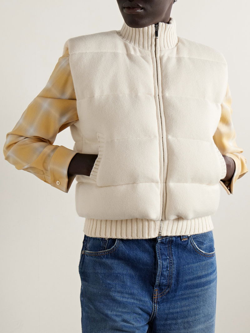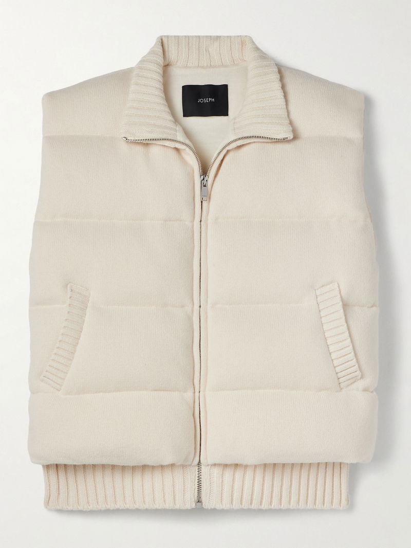 Joseph's quilted vest is a cozy layer for brisk autumn days. It's knitted from soft merino wool and filled with insulating down for added warmth. Wear it over a simple T-shirt or sweater.