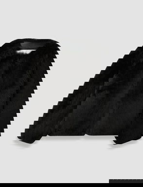 This style is reversible, with soft shearling one side and smooth leather on the other side. It has a hook closure at the neckline.