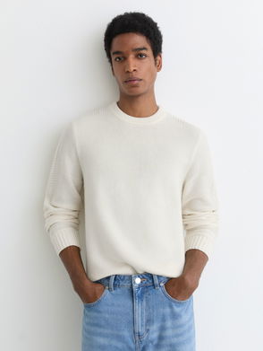 Relaxing the silhouette, the Rib Sweater Soft Wool Knitwear is comprised from a hand soft pure wool and features bi-colour block details to add depth complete with a ribbed pattern to elevate the dimensions. Functionally versatile, this modern wardrobe can build a look for cosy layering, pair over relaxed trousers.