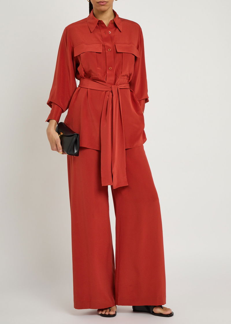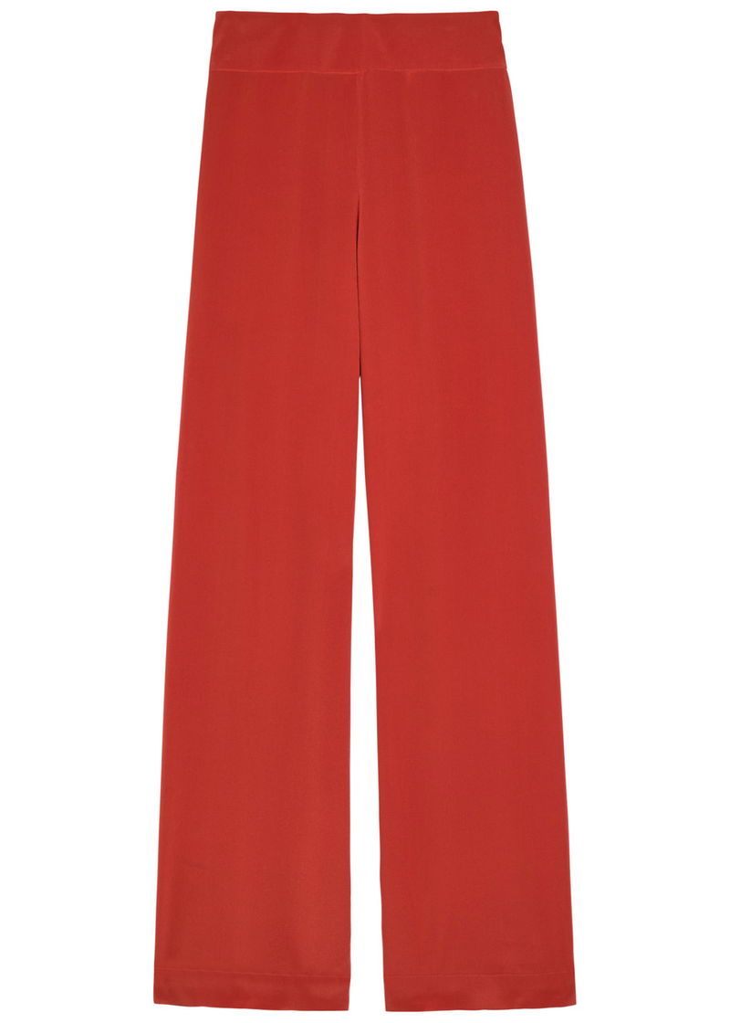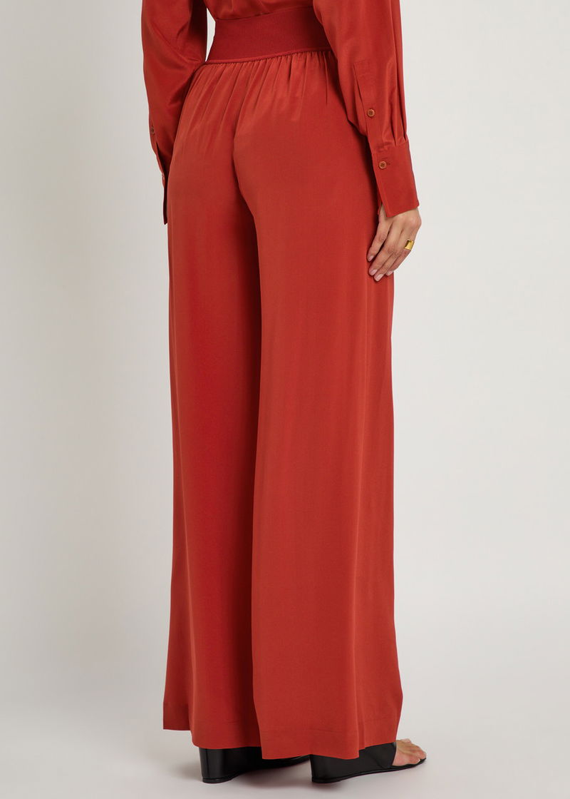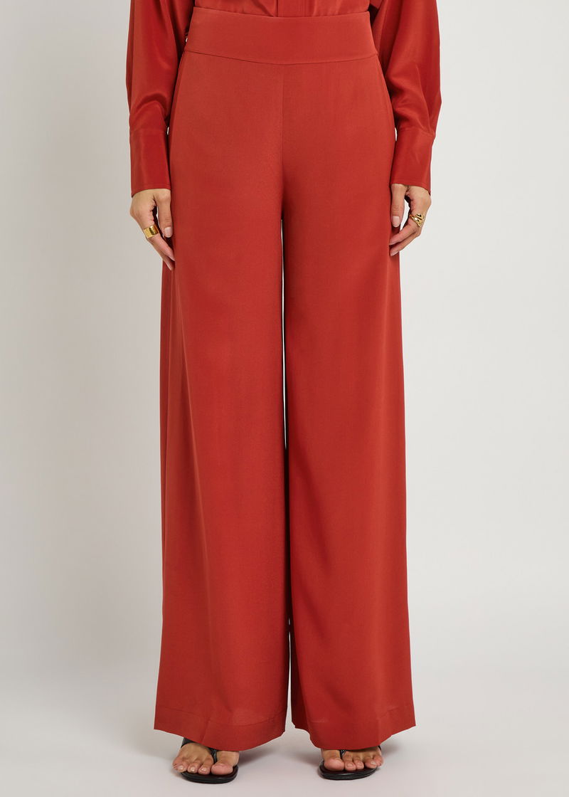 Joseph silk trousers. Partially ribbed waistband, side slip pockets.