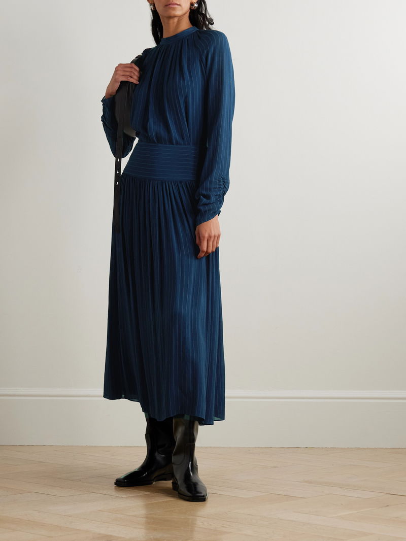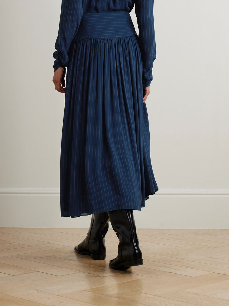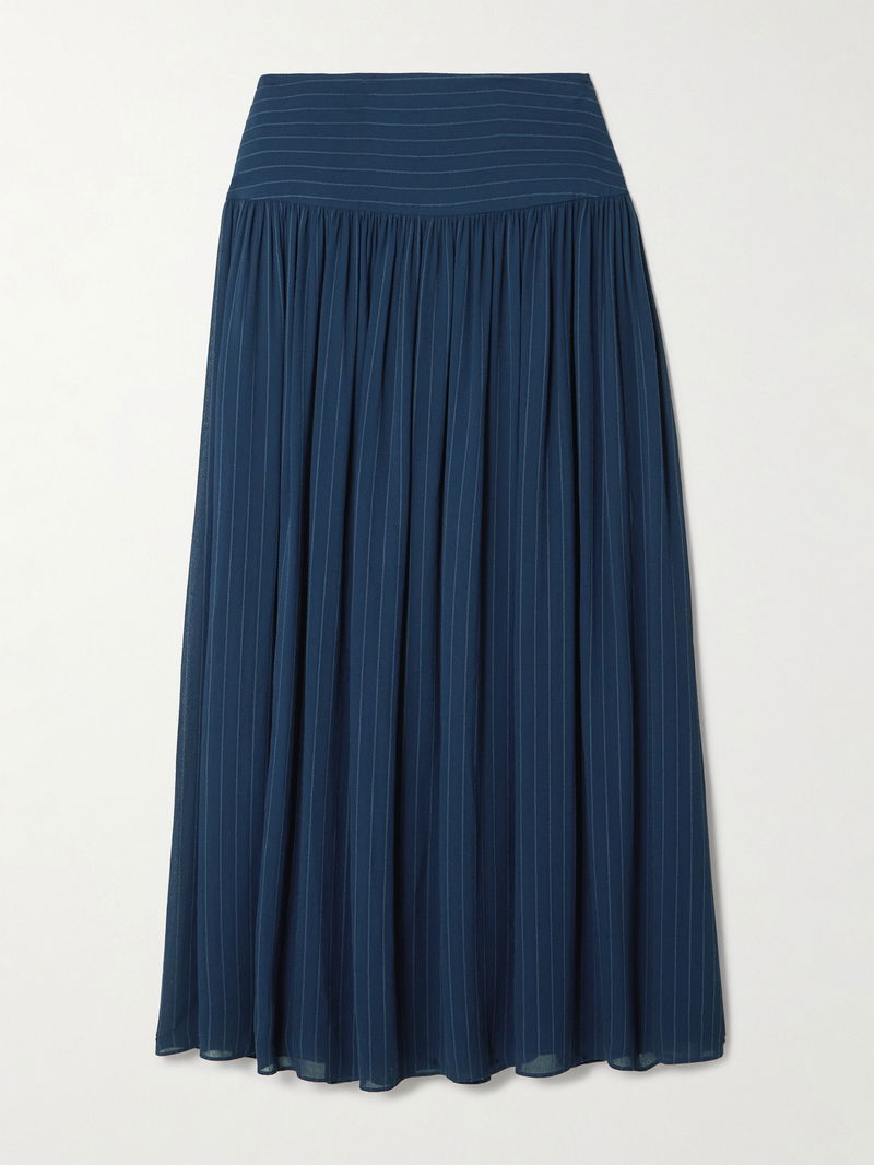 True to Joseph's sleek sophistication, this 'Santos' midi skirt is cut from airy crepe mapped with pinstripes. It's lightly gathered below the fitted waist panel, creating volume through the length.