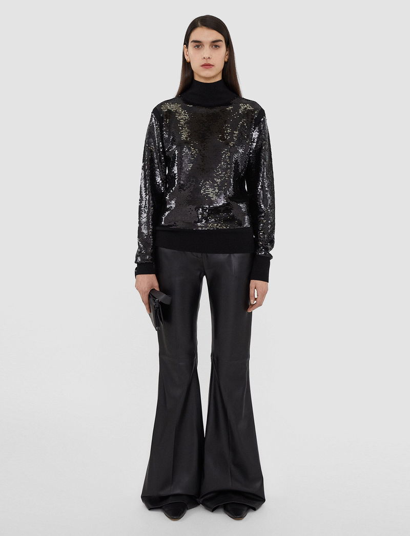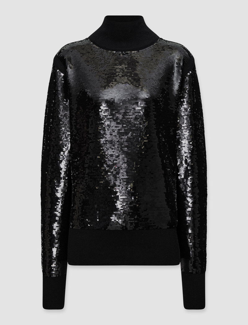 The Sequins Knit High Neck Jumper is a regular fit jumper crafted from a fine wool blend and embroided with sequins. This festive piece features a high neck and rib stitch detailing on the collar, hem and cuffs.