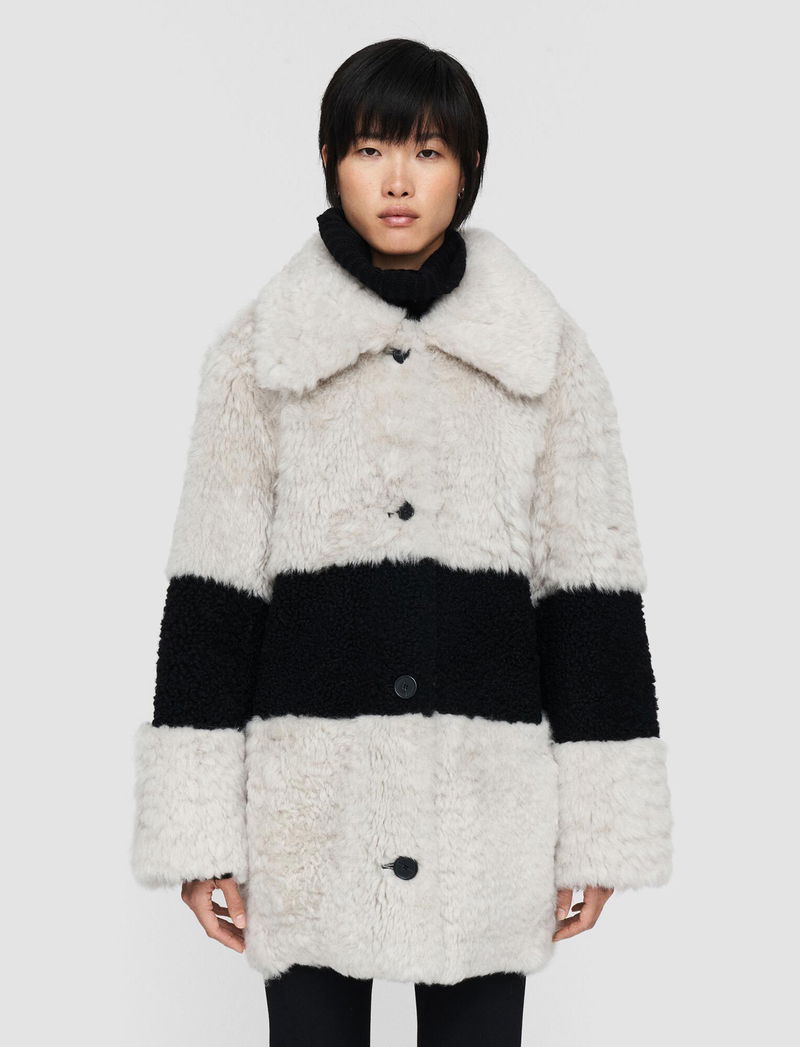 The Shearling Collage Abingdon Coat is a relaxed fit, single breasted coat beautifully crafted from the softest lambskin and shearling wool. This coat is reversible, showcasing textured shearling on one side and smooth lambskin on other side. Finished with two spacious front pockets, this timeless, luxurious coat will remain a statement piece season after season.
