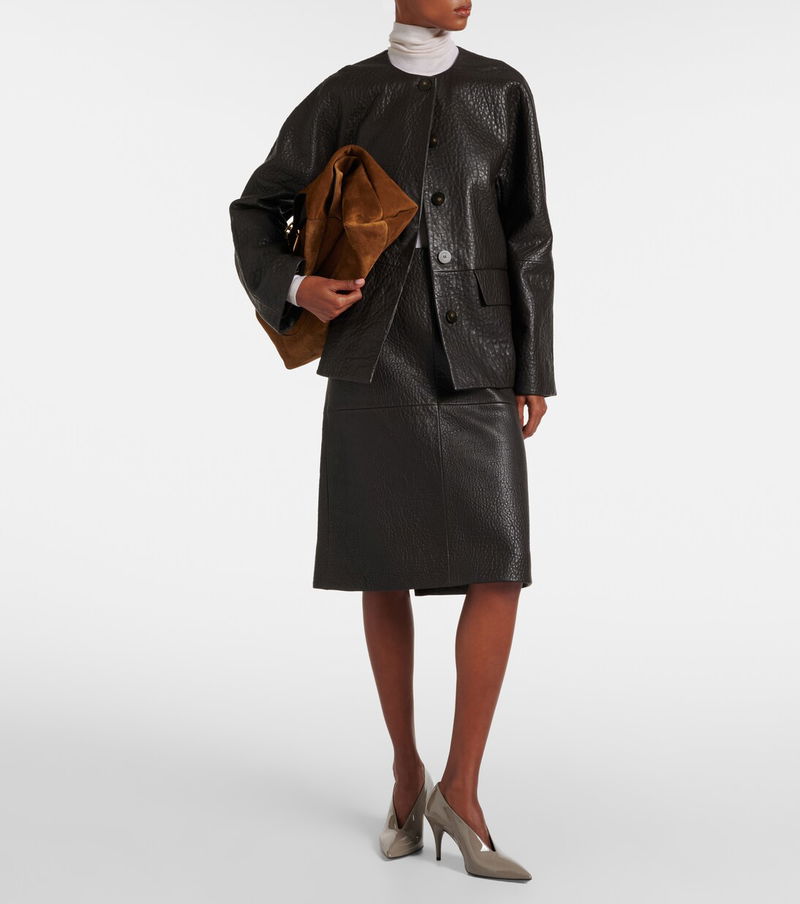 Notable for its understated yet sophisticated approach to design, Joseph delivers the building blocks for your forever wardrobe. The Shroff skirt is made from panels of textured leather and cut to a classic pencil silhouette.