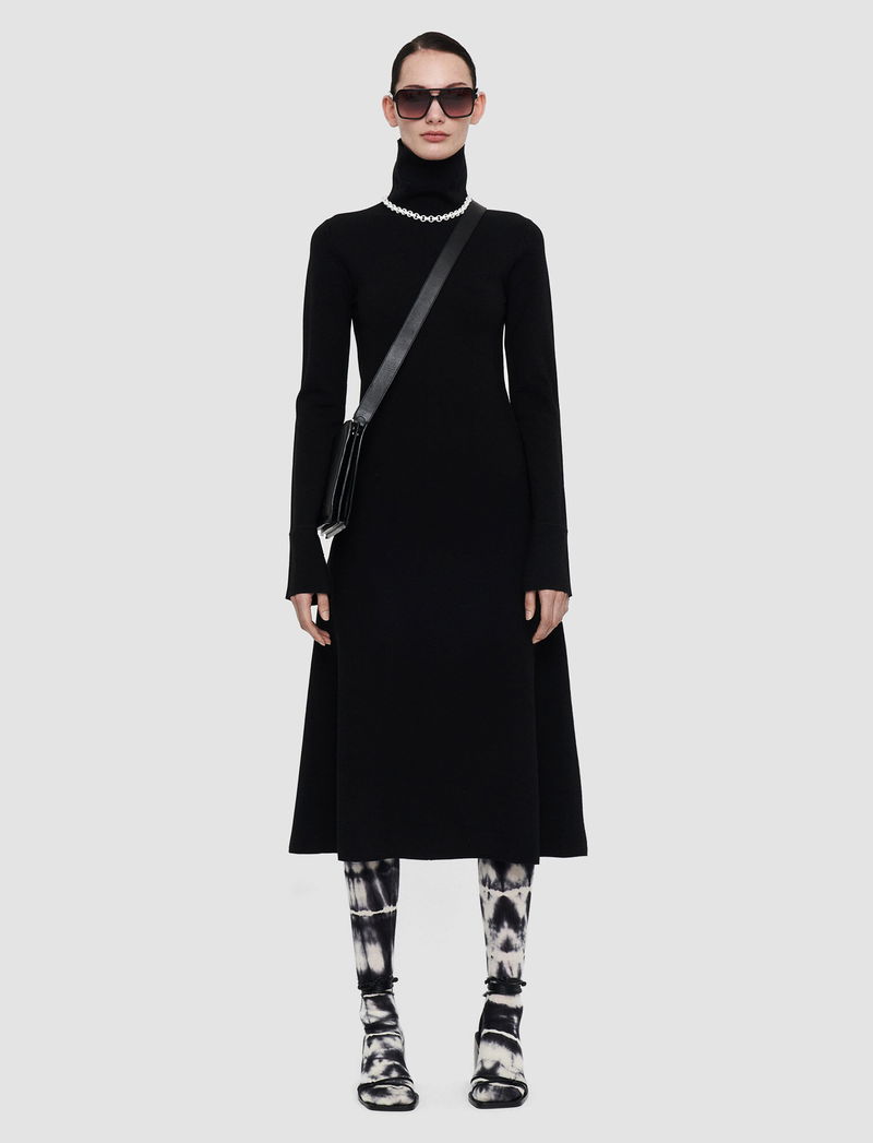 The Silk Stretch Dress is a slim fit to flare dress, crafted from a blend of silk and lycra. Knitted together in compact Milano stitch, this dress is soft to touch. It offers a flattering and clean silhouette.