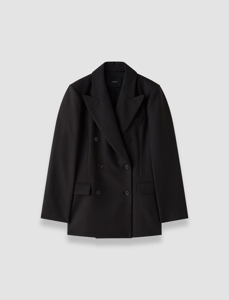 The Valery Flannel Wool Jacket is a double-breasted jacket, crafted from virgin wool. It's finished with wide lapels and shoulder padding for a sharp, tailored look. Offering structure and comfort with a luxuriously smooth, woollen texture.