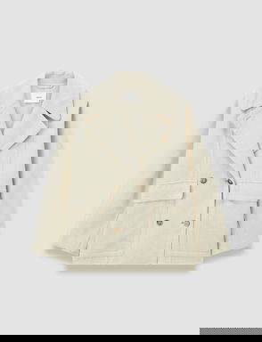Its relaxed shape is brought to life through a black and ivory Donegal tweed texture, while a bold collar and a single gold-tone bean button lend a sculptural, statement finish.