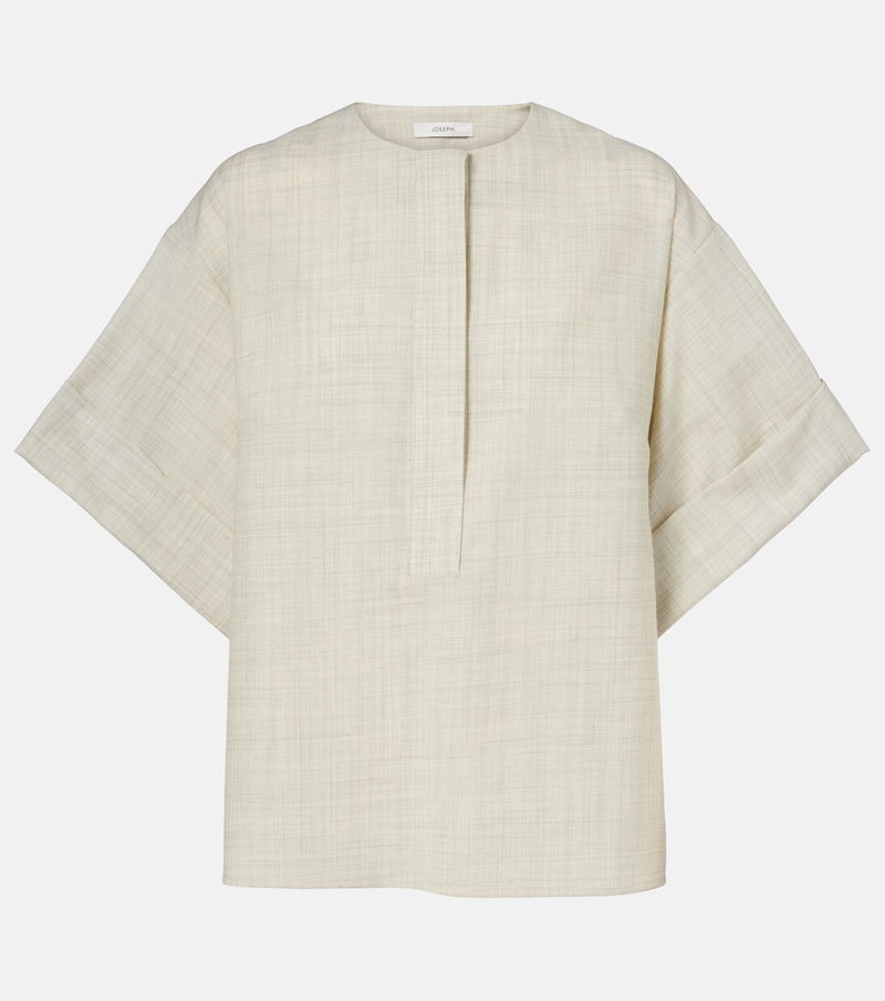 Notable for its understated yet sophisticated approach to design, Joseph delivers the building blocks for your forever wardrobe. The Yani top is crafted from lightweight virgin wool in a boxy silhouette with wide short sleeves and a concealed front closure.