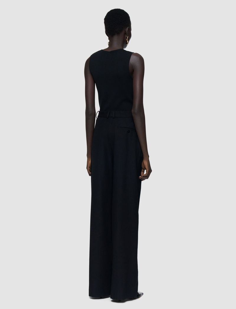 The Yukio Gabardine Stretch Trousers are a high-rise, wide leg style, defined by a straight silhouette from hip to hem. Crafted from JOSEPH’s signature cotton-blend gabardine with exceptional stretch recovery, they maintain a clean, structured shape while allowing freedom of movement. They offer a smooth, heavyweight cotton hand feel.