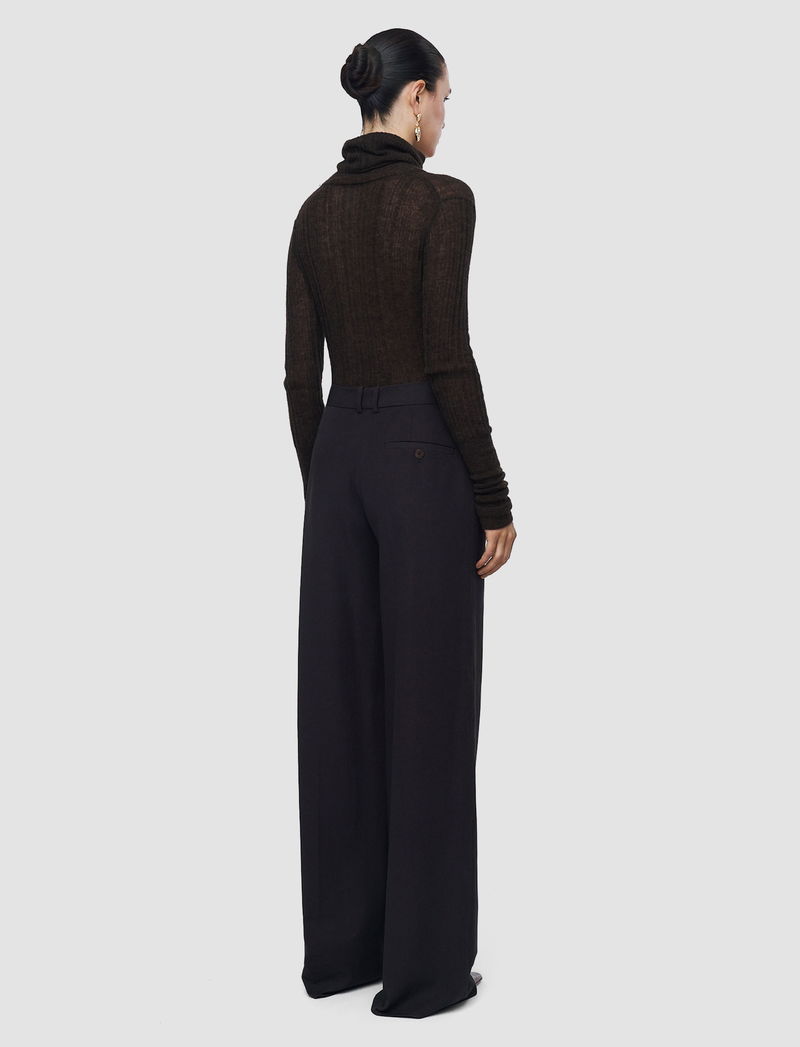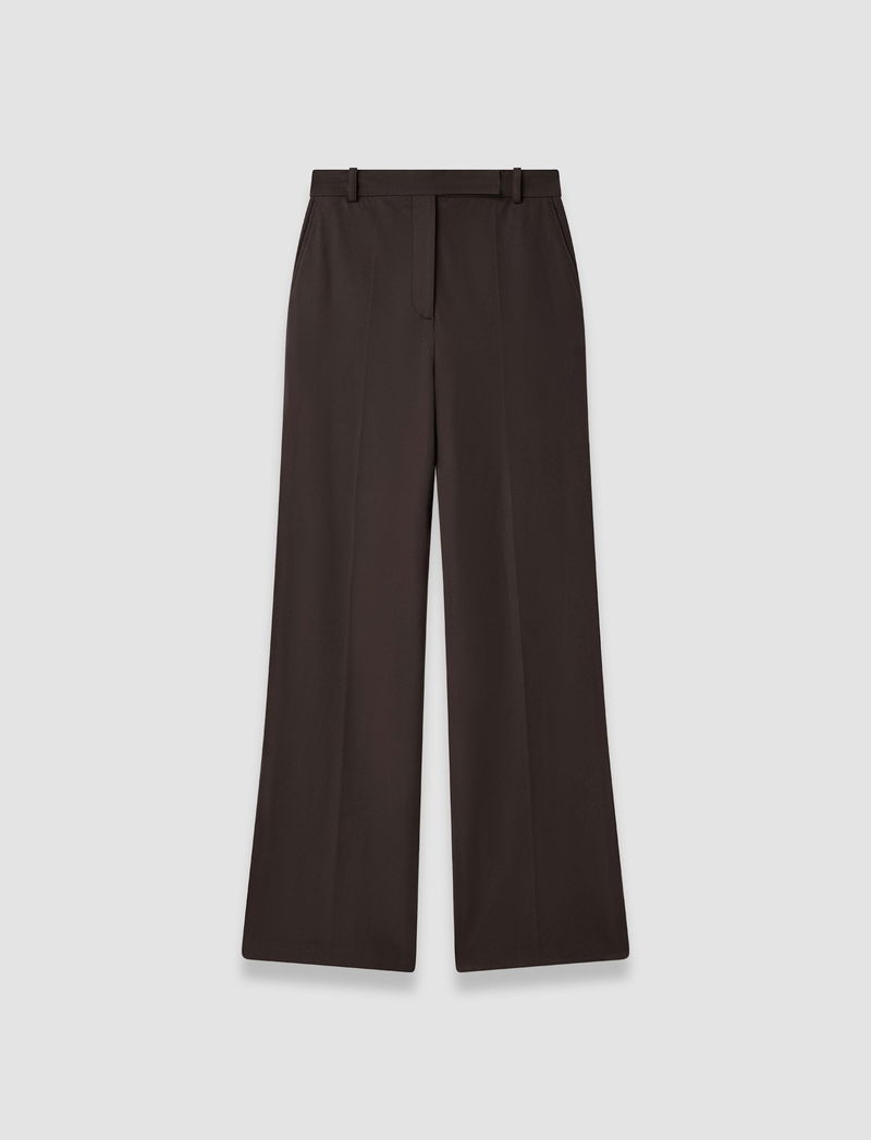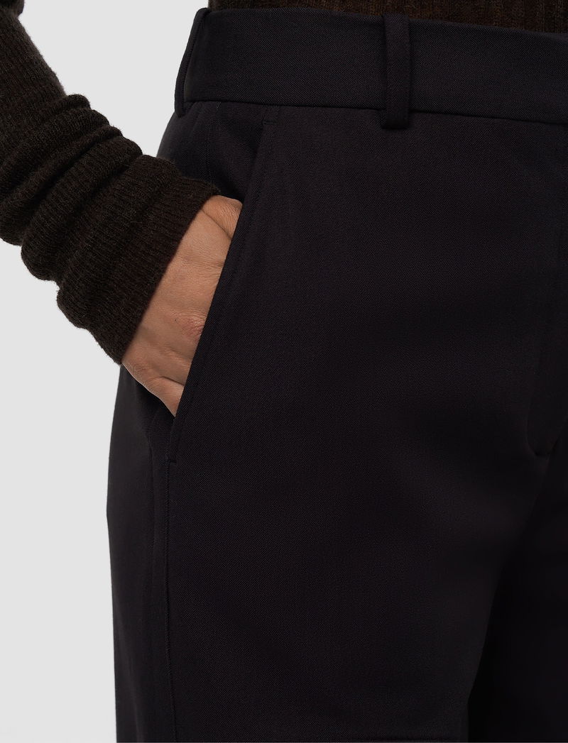 The Yukio Gabardine Stretch Trousers are a high-rise, wide leg style, defined by a straight silhouette from hip to hem. Crafted from JOSEPH’s signature cotton-blend gabardine with exceptional stretch recovery, they maintain a clean, structured shape while allowing freedom of movement. They offer a smooth, heavyweight cotton hand feel.