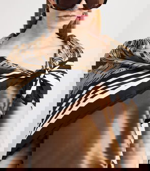 Crafted from silk with a lustrous finish, this versatile scarf features a striped motif in black and ivory. An elegant accessory designed to elevate everyday looks, sharpen classic tailoring, or simply deliver a pop of print.