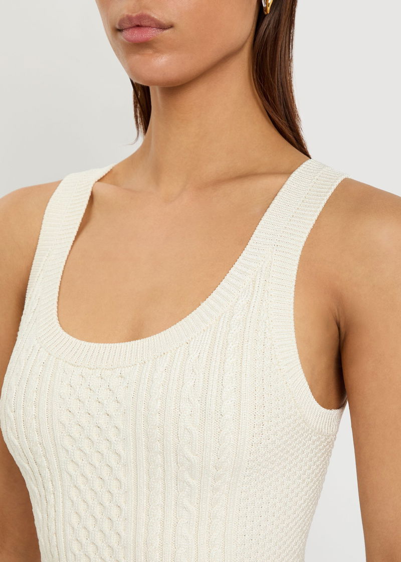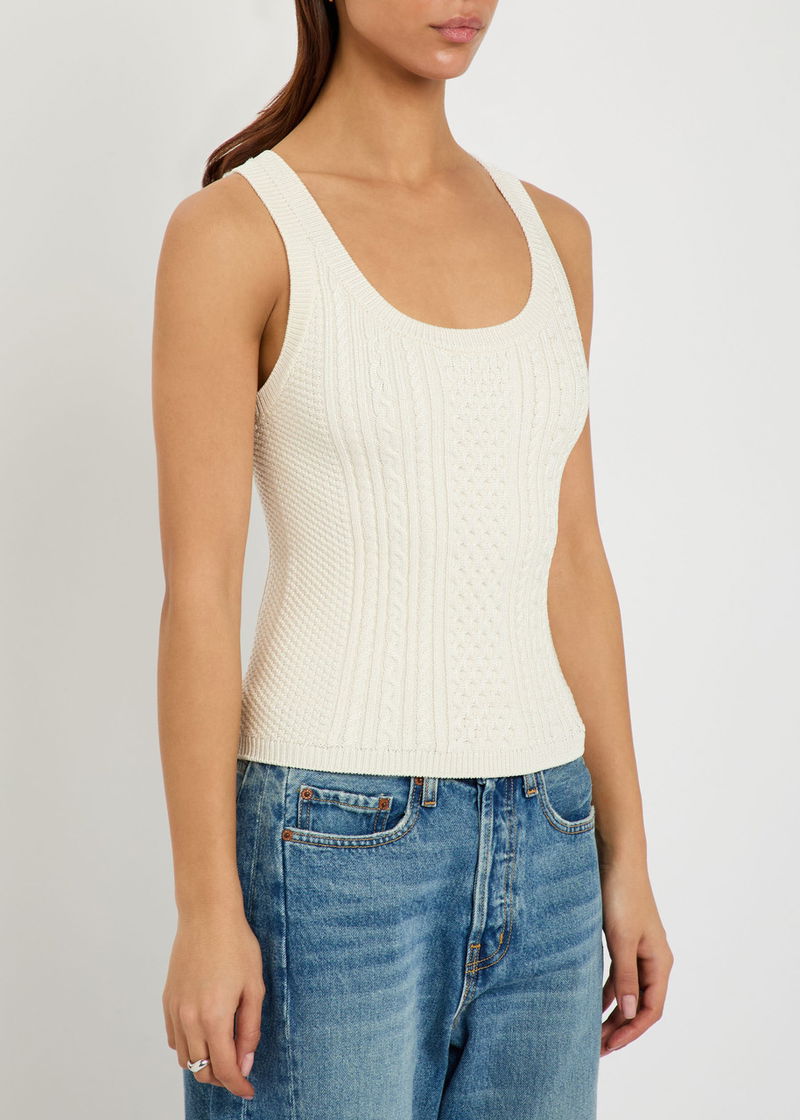 JW Anderson knit tank top. Scoop-neck, ribbed trims. Slips on.
