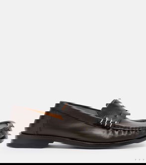 JW Anderson's fascination with nautical codes is reflected by the chunky gold curb chain accenting these burgundy loafers, which echoes harbour hardware. They're crafted from leather to a backless shape with a tan suede insole, cork midsole and black rubber sole.