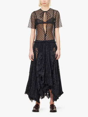 JW Anderson chiffon maxi dress. Halterneck, draped off-the-shoulder sleeves, front split, open back, unfinished hem, fully lined T-bar fastening at back.
