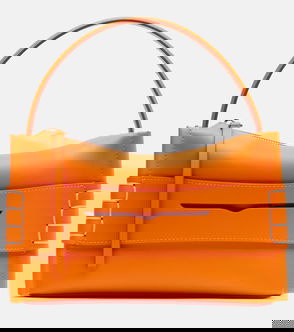 JW Anderson contrasts the striking mustard hue of this felt bag with leather trims and panels in a slate grey shade. Constructed to a classic flap-front design, this mid-sized accessory also bears the label’s signature anchor logo plaque at the front.