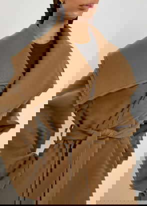 JW Anderson’s conceptual thinking shines through with this trench coat. Crafted from cotton-twill, this fluid style is cast in a classic camel hue and draped to a loose profile that features raglan sleeves, buckled tabs and an asymmetric hem.