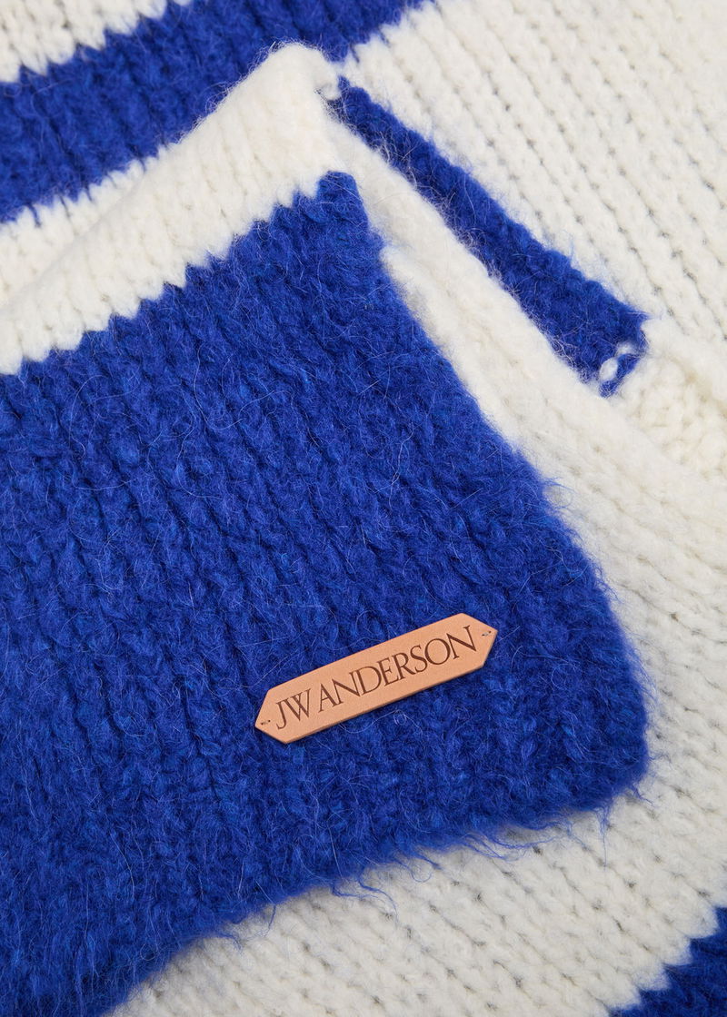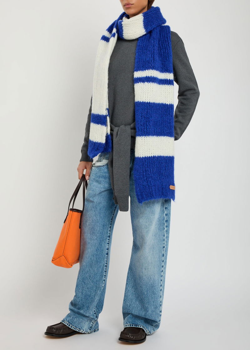 JW Anderson knit alpaca-blend scarf. Striped, designer plaque