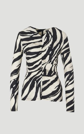 Abstract Zebra Print Asymmetric Neck Sleeveless Crepe Top