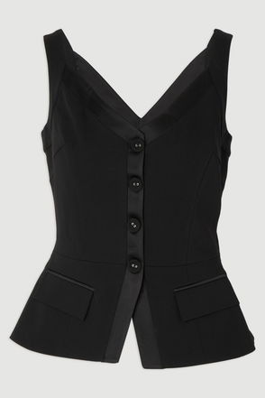 Architectural influences, brought to life through print; Karen Millen presents a new collection in collaboration with Amelia Graham. Elevate your every day wardrobe in our shell top, with a relaxed fit, and a sleeveless design. The real leather adds some edge, while the unique cutout detailing makes for the perfect day to night number. This piece pairs well with anything, from the matching skirt, to tailored trousers, to jeans for an elevated look that will take you seamlessly from day to night.