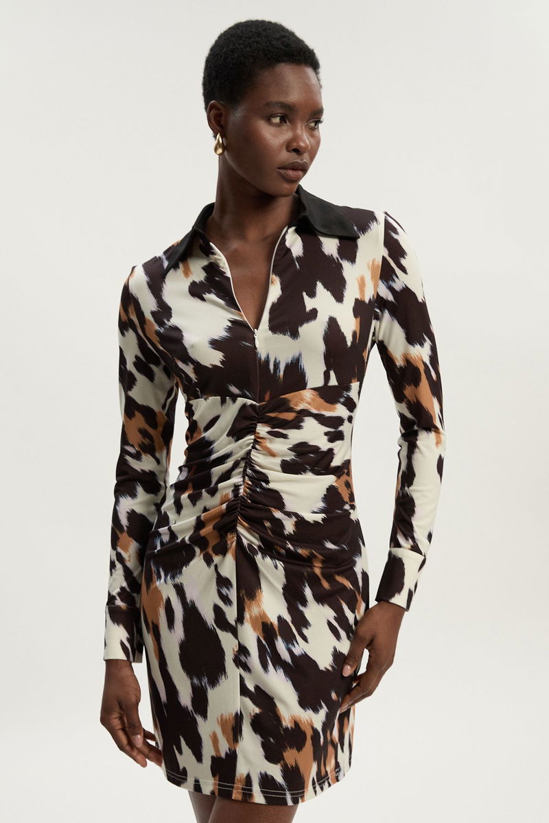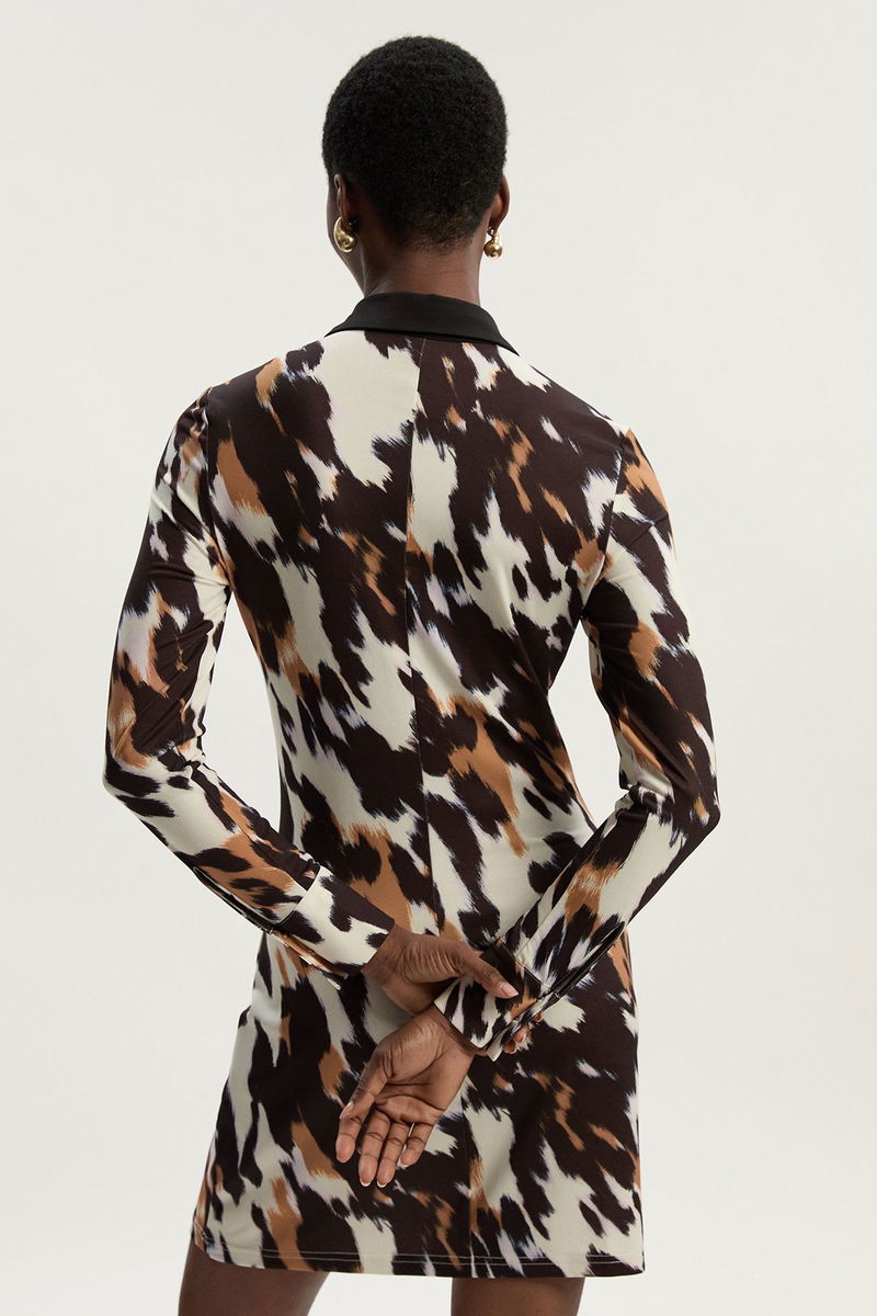 Animal Print Crepe Collared Mini Dress