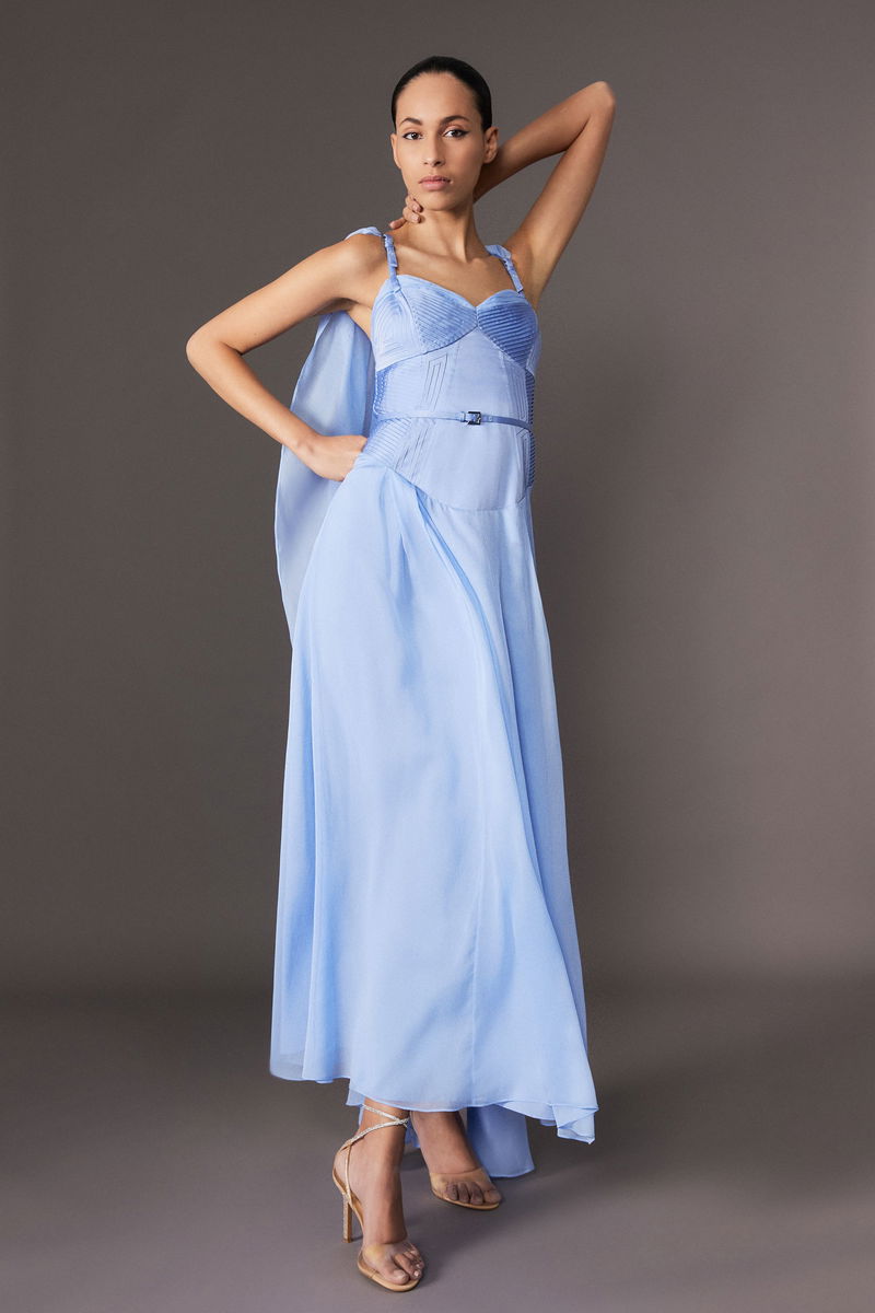 Archive Collection - Corset Detail Georgette Cape Woven Maxi Dress