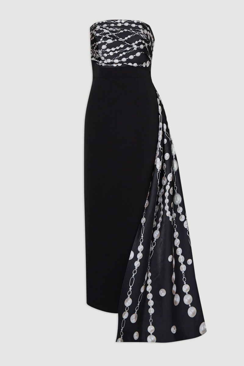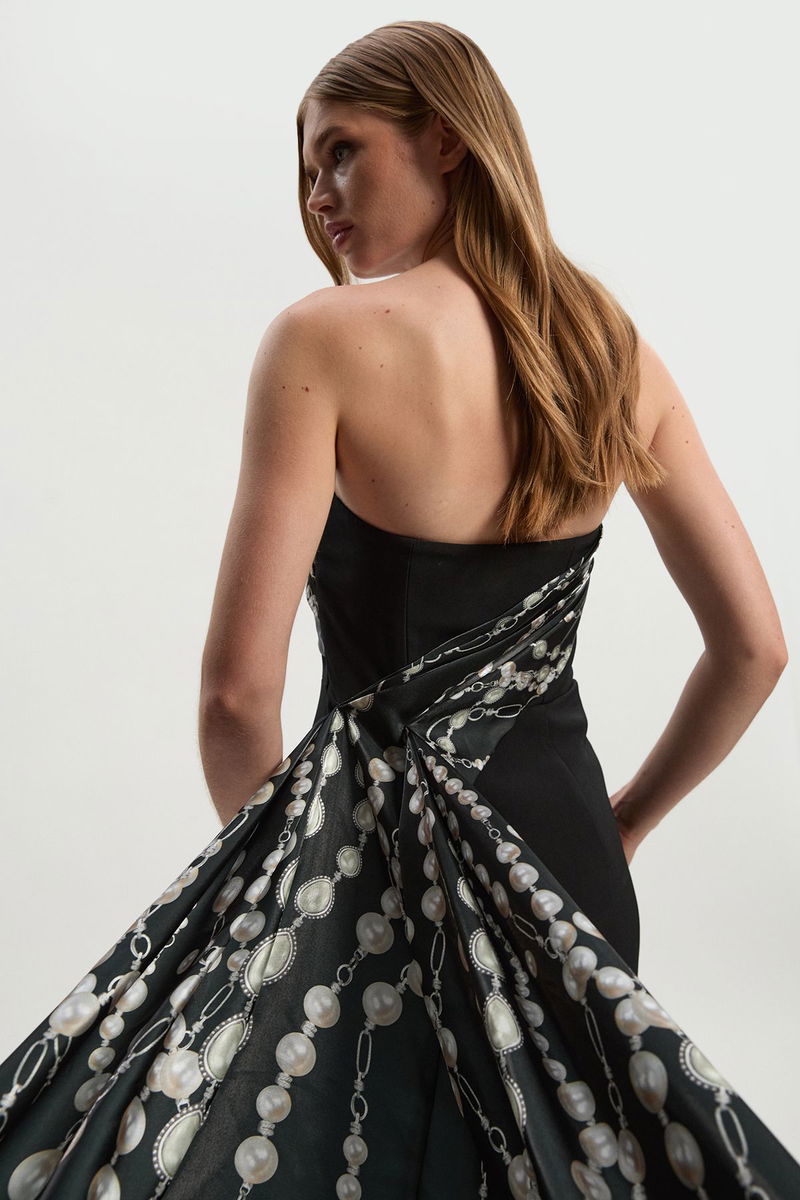 Archive Collection - Petite Pearl Chain Print Corset Maxi Dress