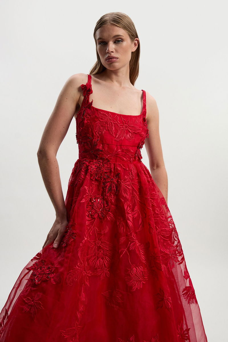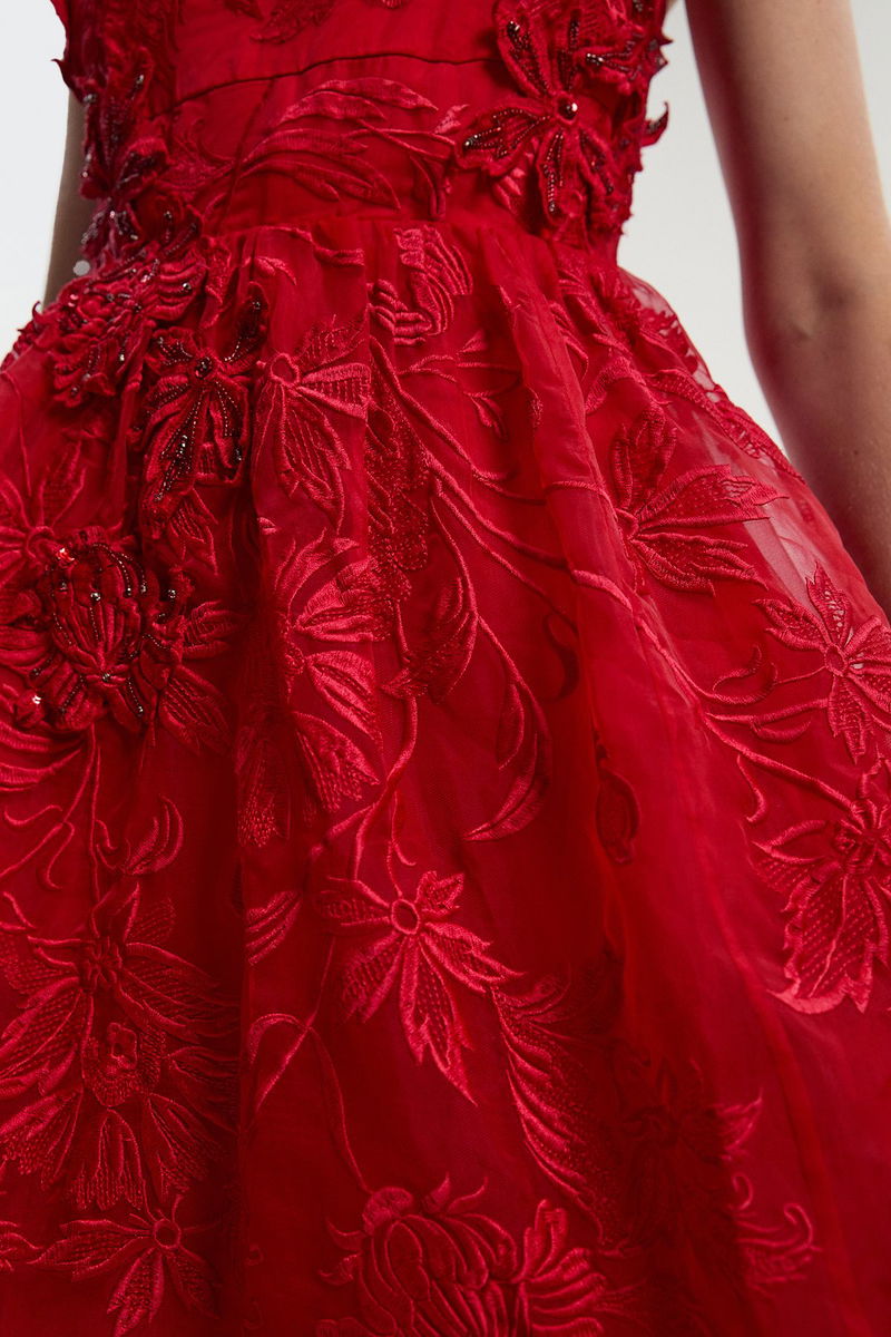 Archive Embroidered Applique Organdie Woven Prom Dress