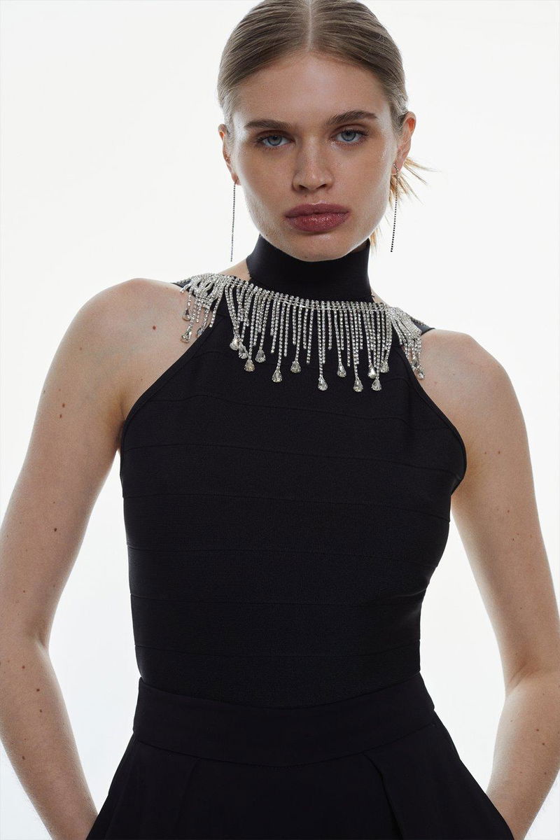 Enhanced with glamorous details, this classic top has received a contemporary update. Drop diamante crystals add an instant statement, while a high halter neckline creates a sophisticated mood. Crystal-clad straps add further appeal, while a rear zip fastening ensures a secure fit.
