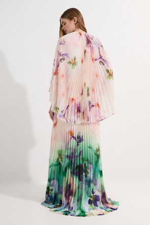 Bandage Figure Form Knit Maxi Dress With Chiffon Cape