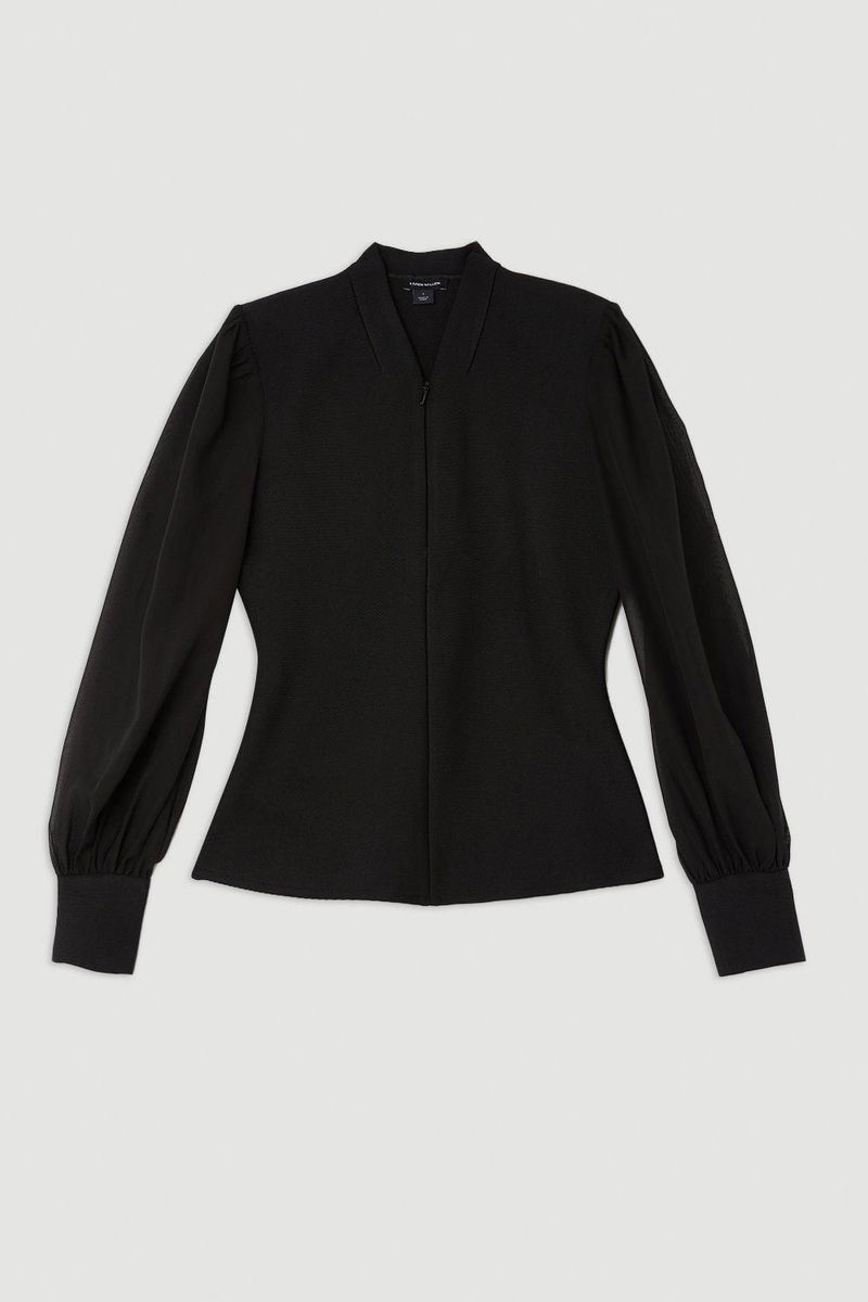 Bandage Figure Form Zip Detail Chiffon Sleeve Knit Top