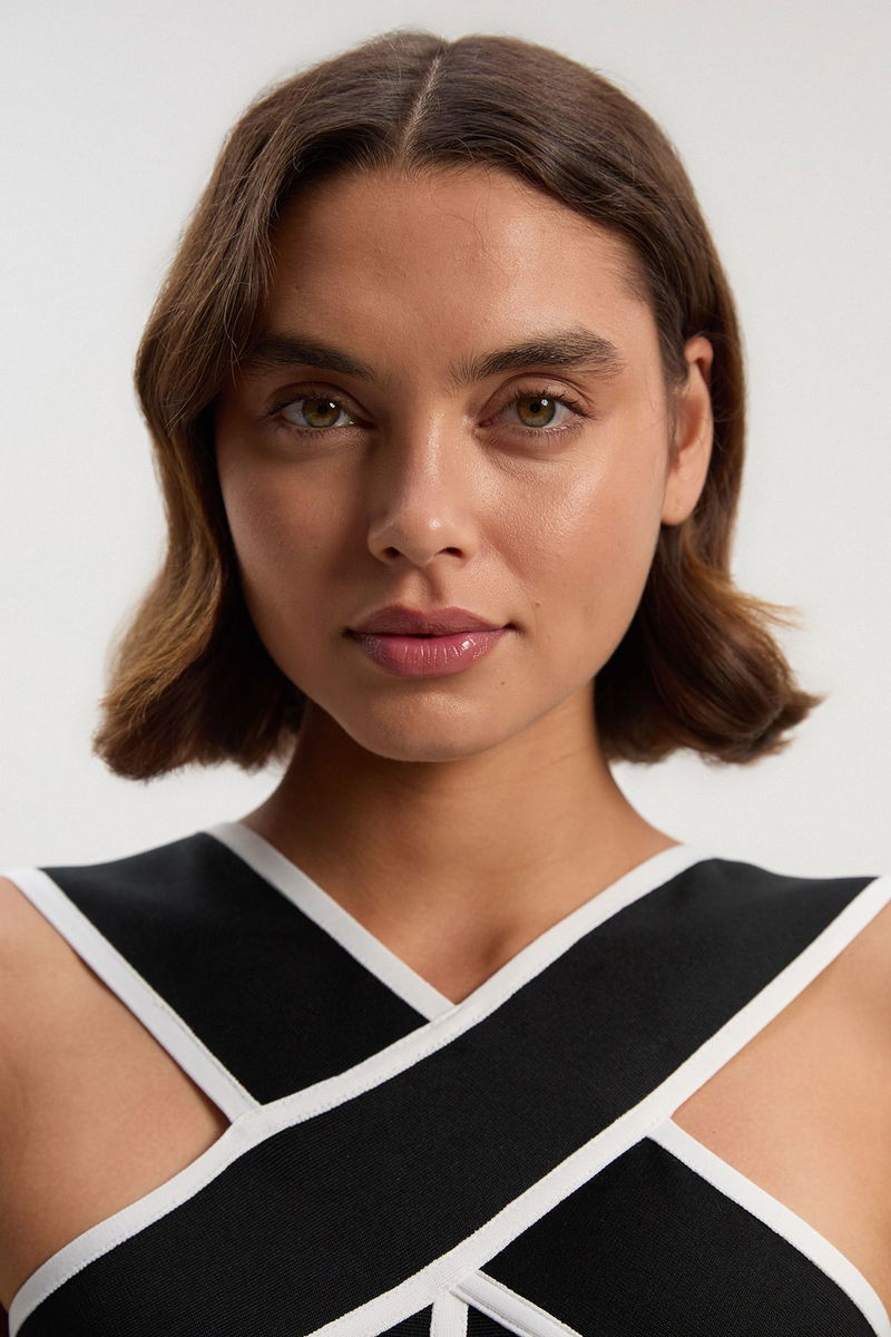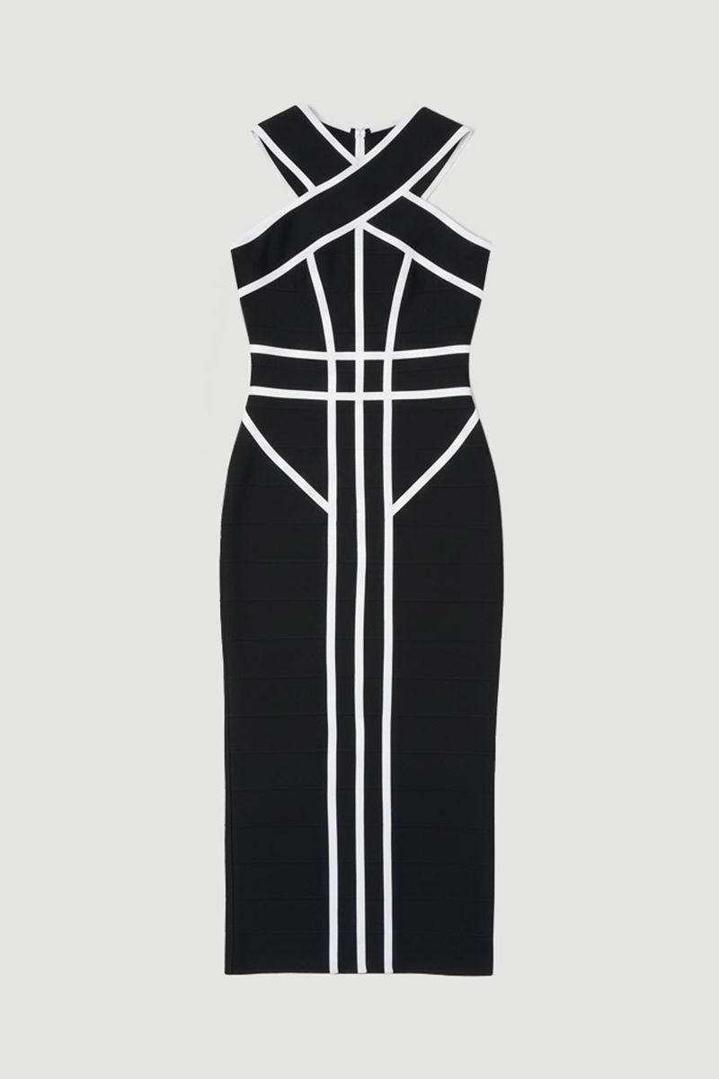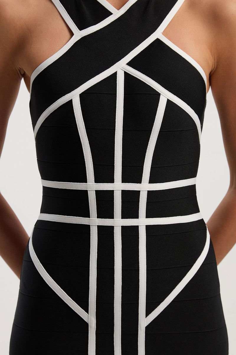 Bandage Knit Contrast Cross Front Dress