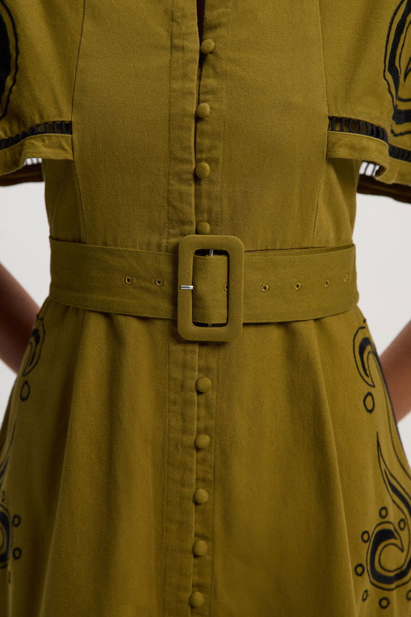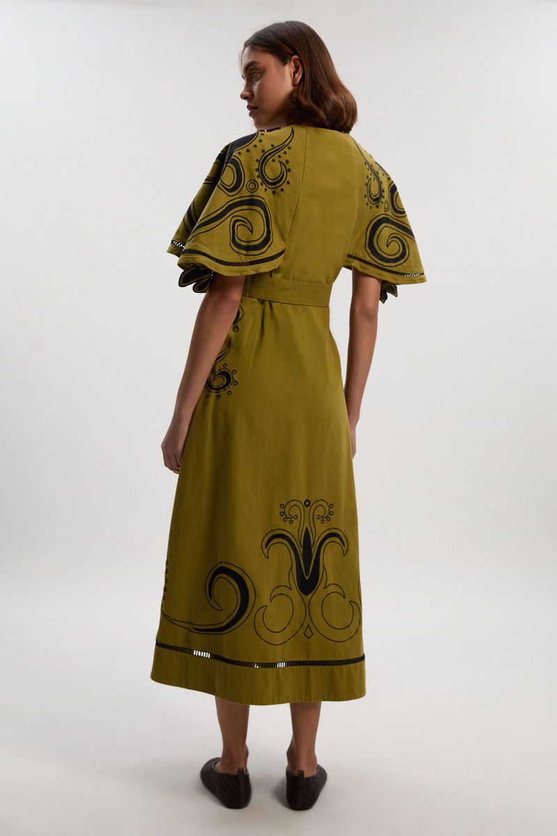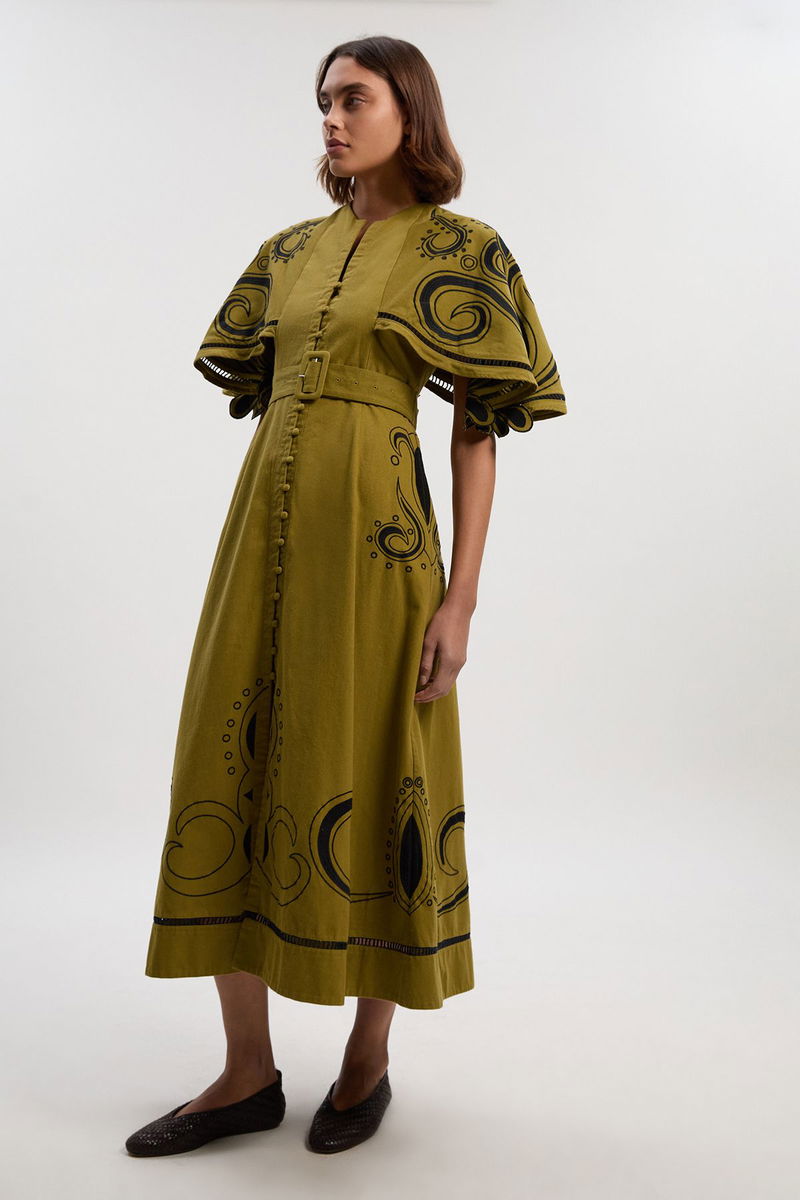 Baroque Embroidered Cape Sleeve Twill Woven Maxi Dress