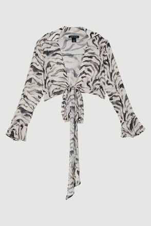 Beach Viscose Georgette Mirrored Rose Print Woven Bardot Top.