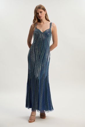 Beaded Contour Sweet Heart Neckline Woven Maxi Dress.