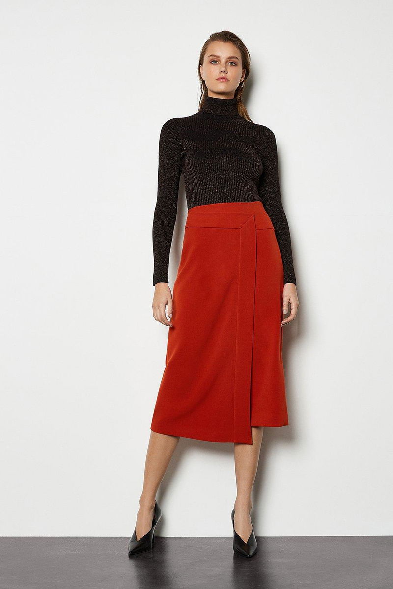 You’ll have this skirt on constant rotation. Designed to flatter perfectly, it features a high waist, asymmetrical wrap-over front and comes in a midi length.