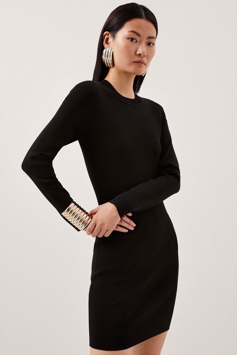 This staple piece is crafted with a viscose blend and offers a sleek and sculpted look. A high neck and long sleeves ensure a sophisticated mood, style this mini dress with strappy heels or boots to complete the look.