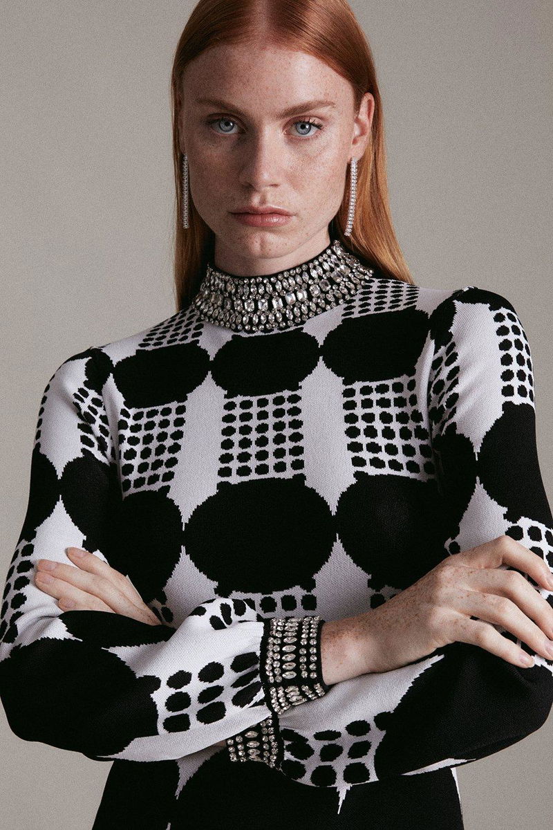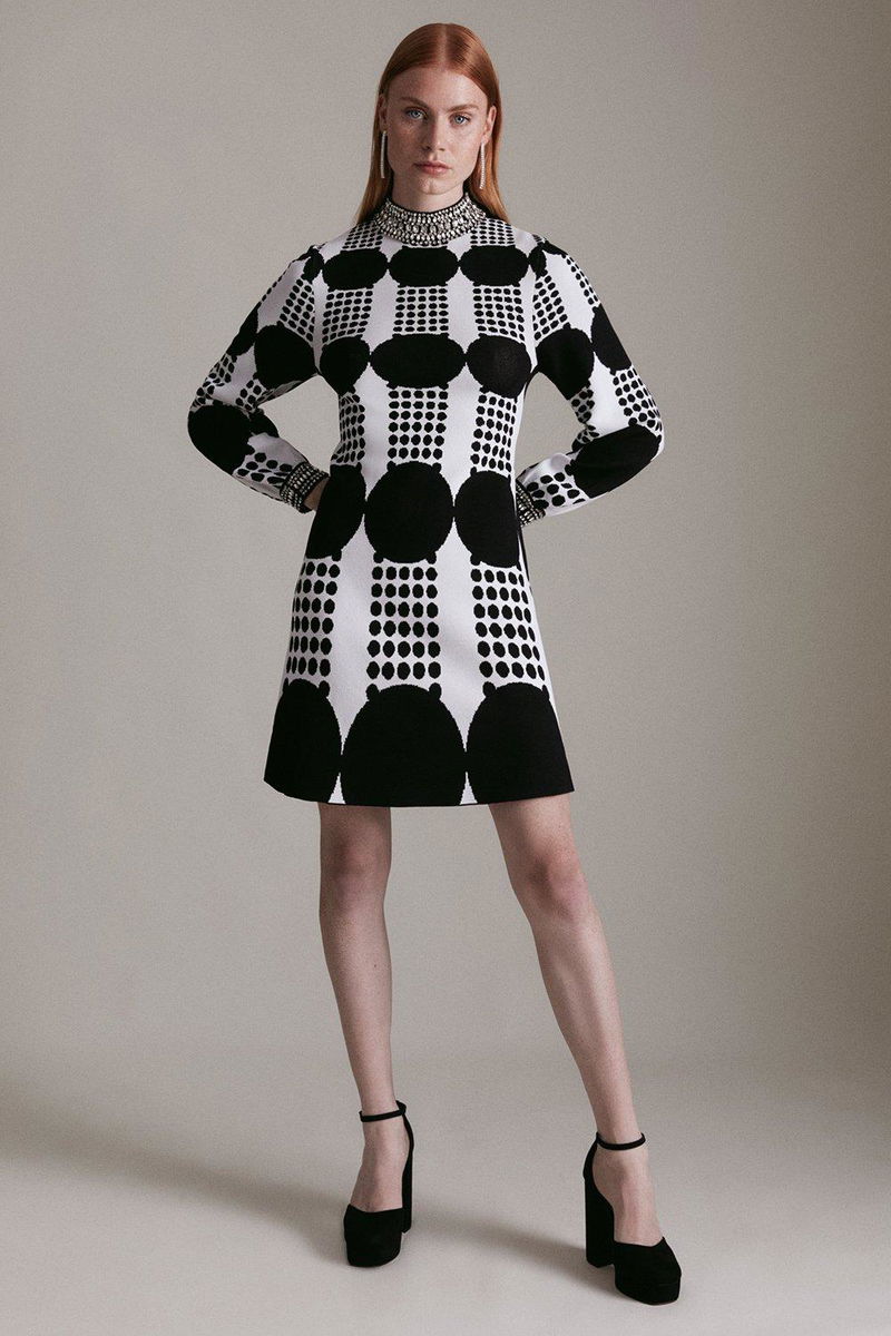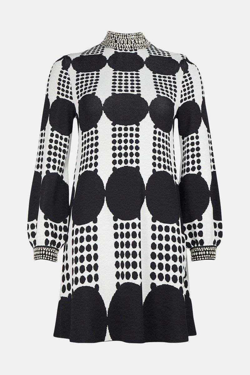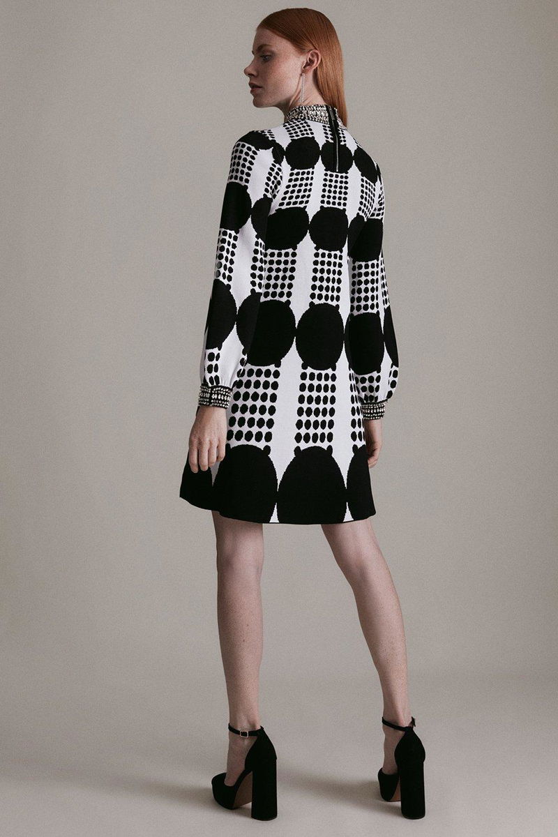 Bold geo knitted swing dress.