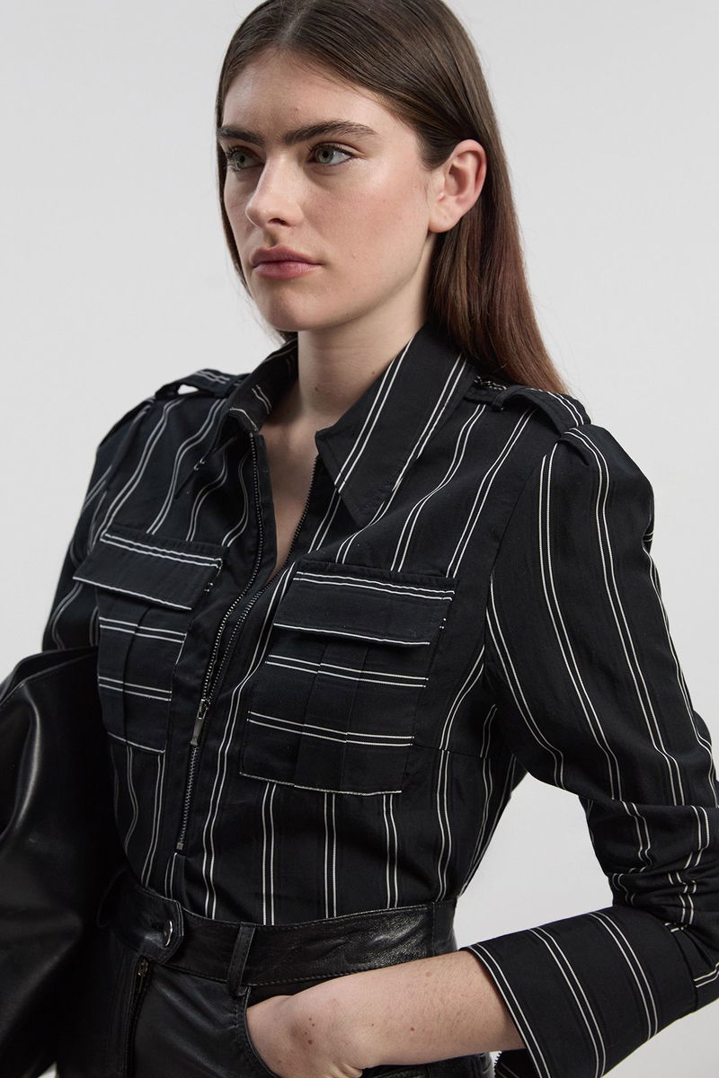 Bold Stripe Cotton Woven Utility Shirt