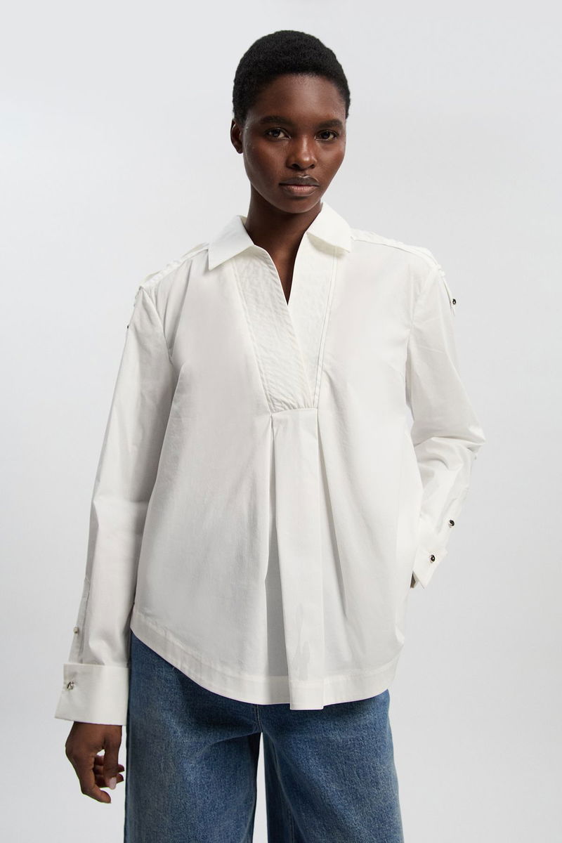 Boxy Cotton Placket Detail Woven Shirt