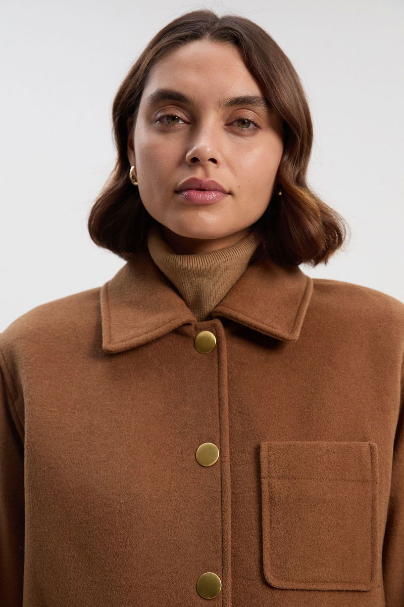 Brushed Wool Patch Pocket Tailored Medium Coat