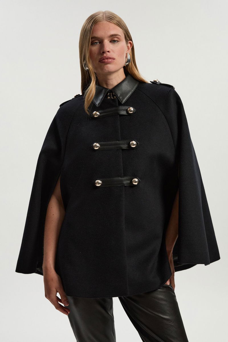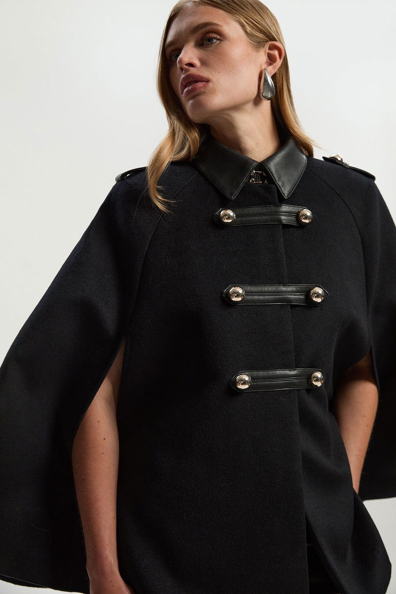 Brushed Wool PU Mix Tailored Cape Short Coat