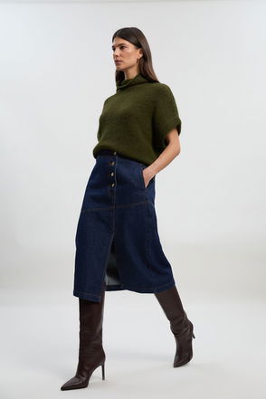 This season’s skirts are all in the details. Elevated by its gold decorative buttons, this mini is designed with a timeless A-line shape that’ll flatter every shape, alongside a high cinched-in waist and back-zip closure for a seriously sleek finish.