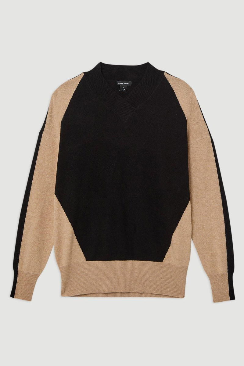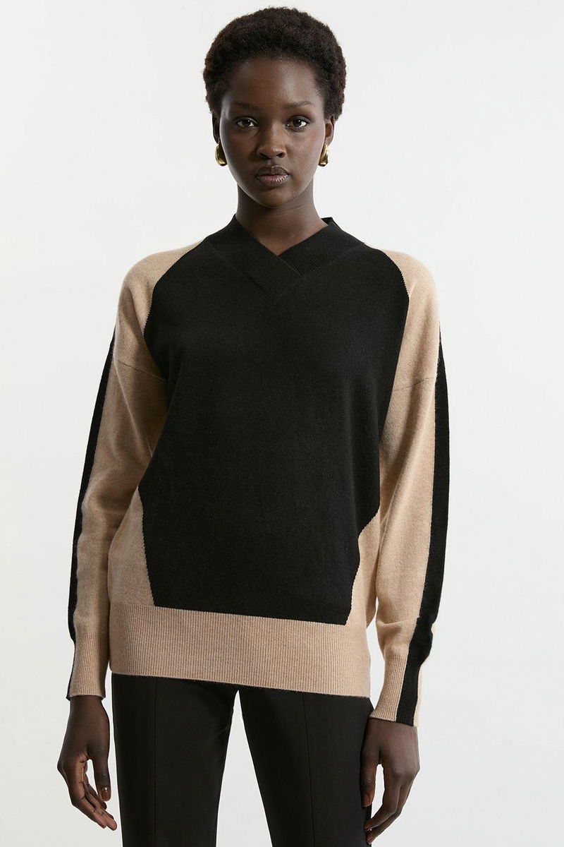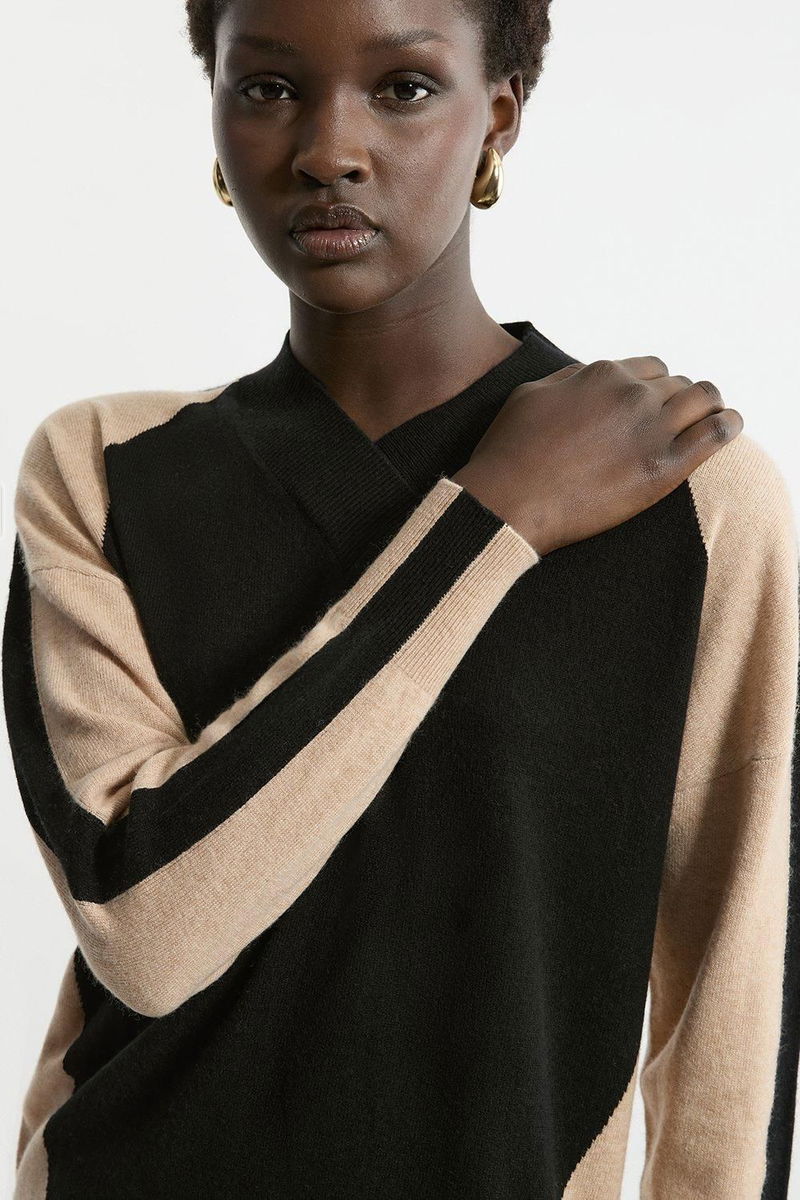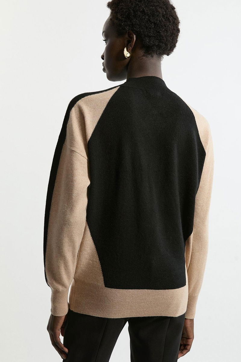 Cashmere Wool Knit High Neck Colour Block Jumper